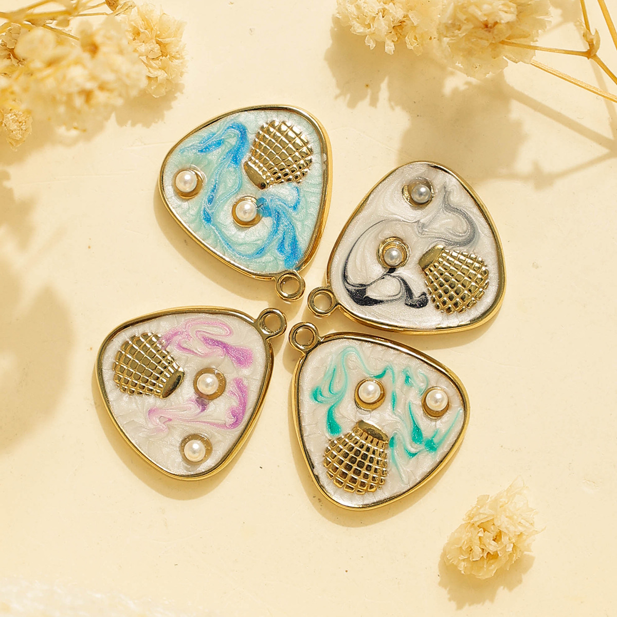 Pendentifs en acier inoxydable émail, Acier inoxydable 304, avec perle de plastique, Placage de couleur d'or, DIY, plus de couleurs à choisir, Vendu par PC