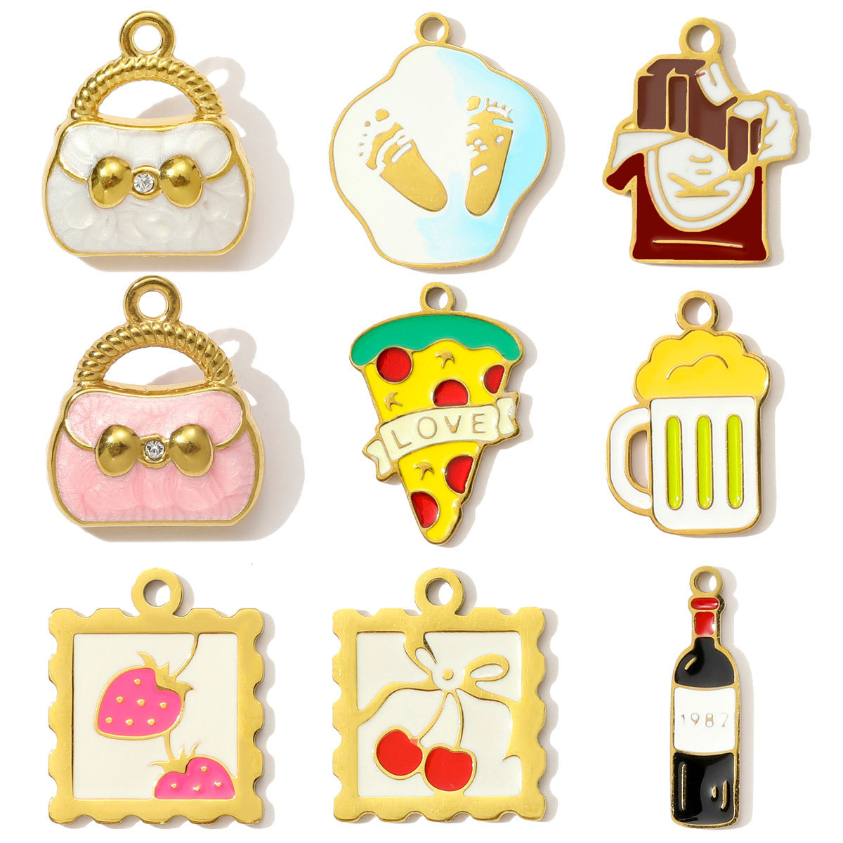 Pendentifs en acier inoxydable émail, Acier inoxydable 304, Placage de couleur d'or, DIY, plus de couleurs à choisir Vendu par sac