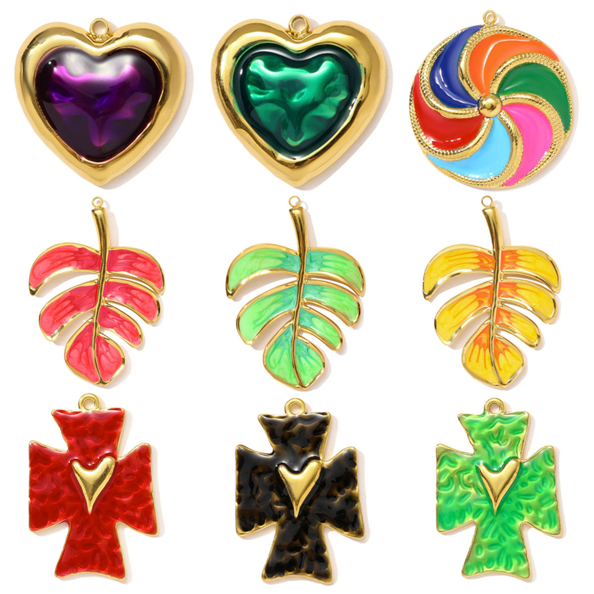 Pendentifs en acier inoxydable émail, Acier inoxydable 304, Placage de couleur d'or, DIY, plus de couleurs à choisir Vendu par sac