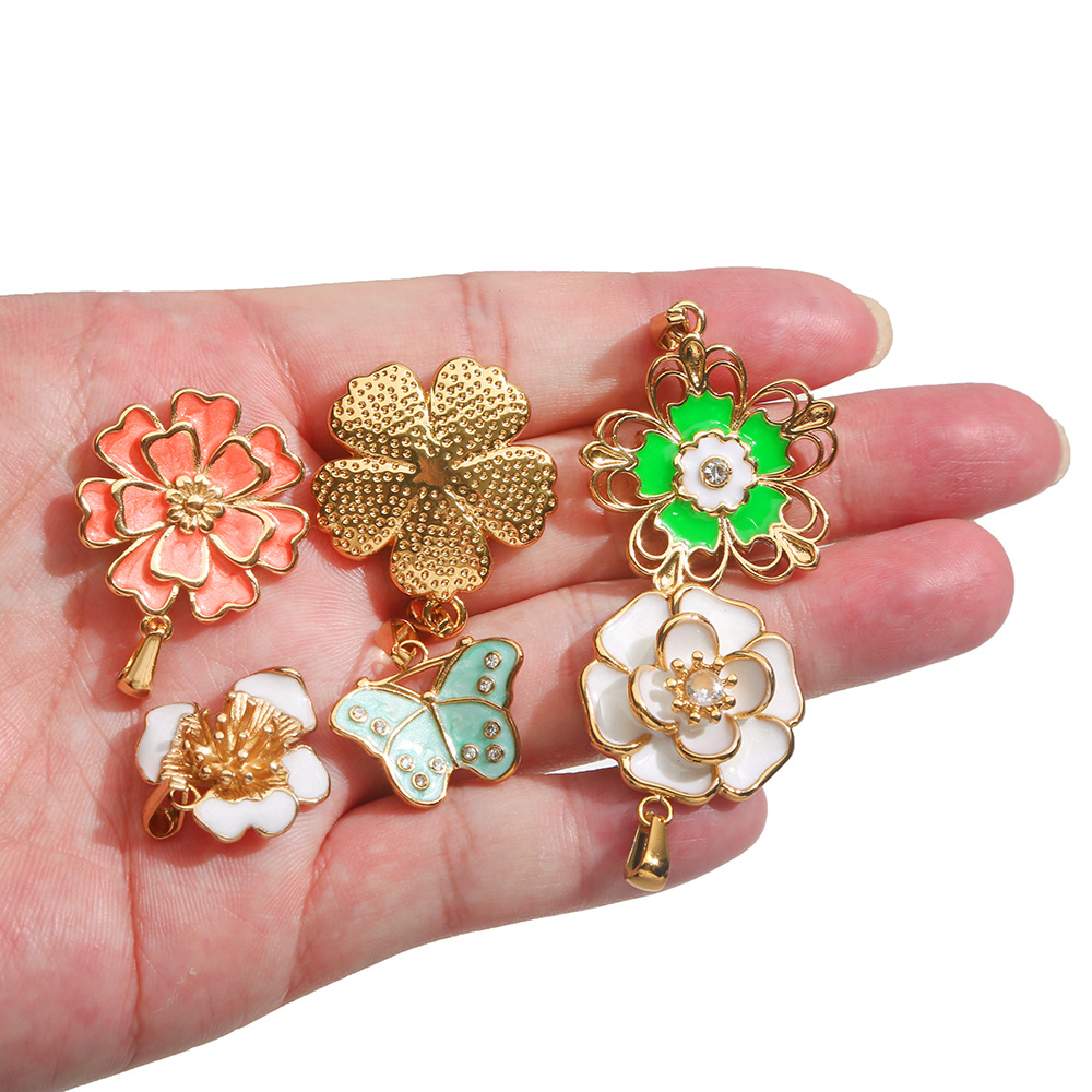 Pendentifs en acier inoxydable émail, Acier inoxydable 304, Placage de couleur d'or, DIY, plus de couleurs à choisir Vendu par sac