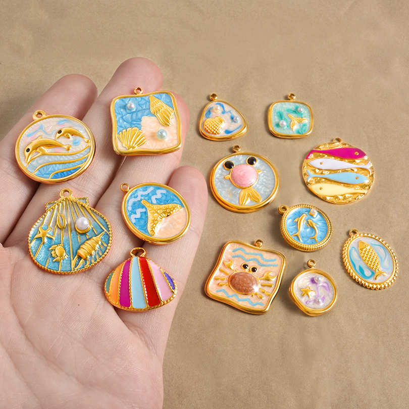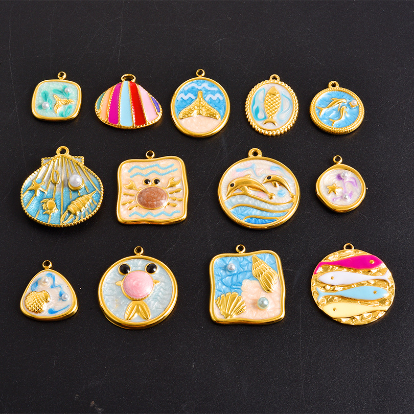 Pendentifs en acier inoxydable émail, Acier inoxydable 304, Placage de couleur d'or, DIY, plus de couleurs à choisir Vendu par sac