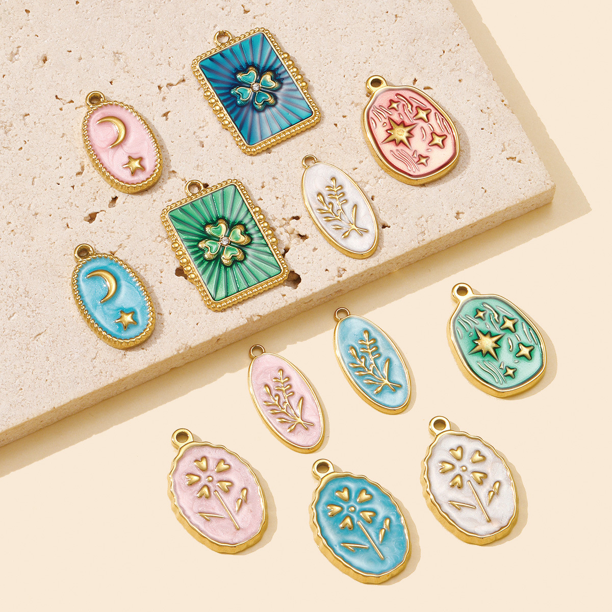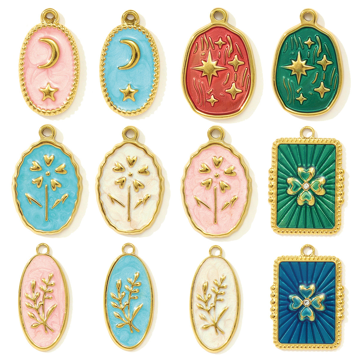 Pendentifs en acier inoxydable émail, Acier inoxydable 304, Placage de couleur d'or, DIY, plus de couleurs à choisir Vendu par sac