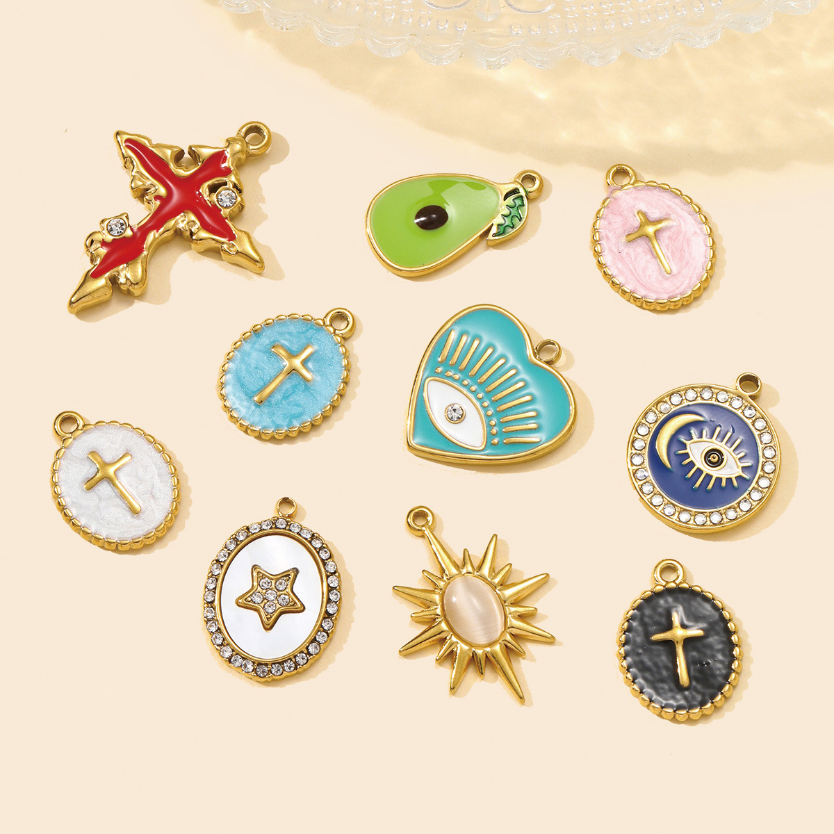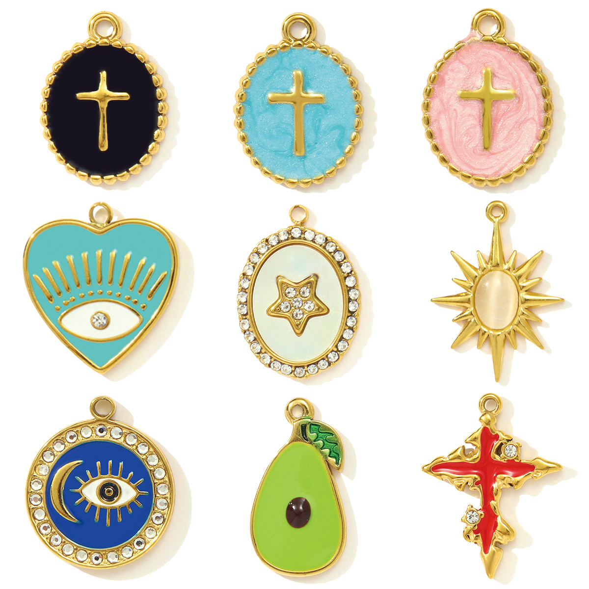 Pendentifs en acier inoxydable émail, Acier inoxydable 304, Placage de couleur d'or, DIY, plus de couleurs à choisir Vendu par sac