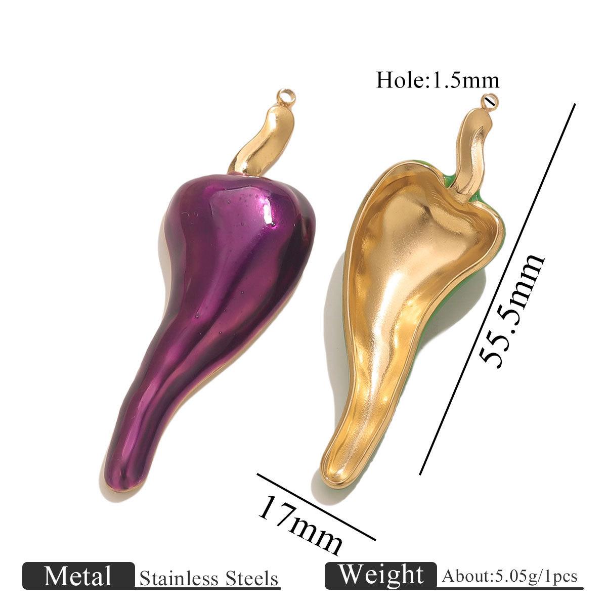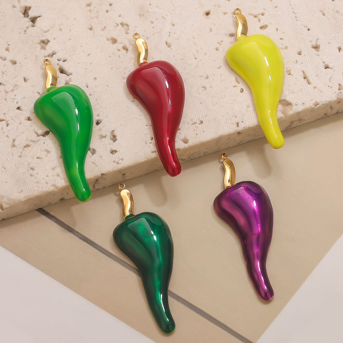 Pendentifs en acier inoxydable émail, Acier inoxydable 304, piment, Placage de couleur d'or, DIY, plus de couleurs à choisir, Vendu par PC