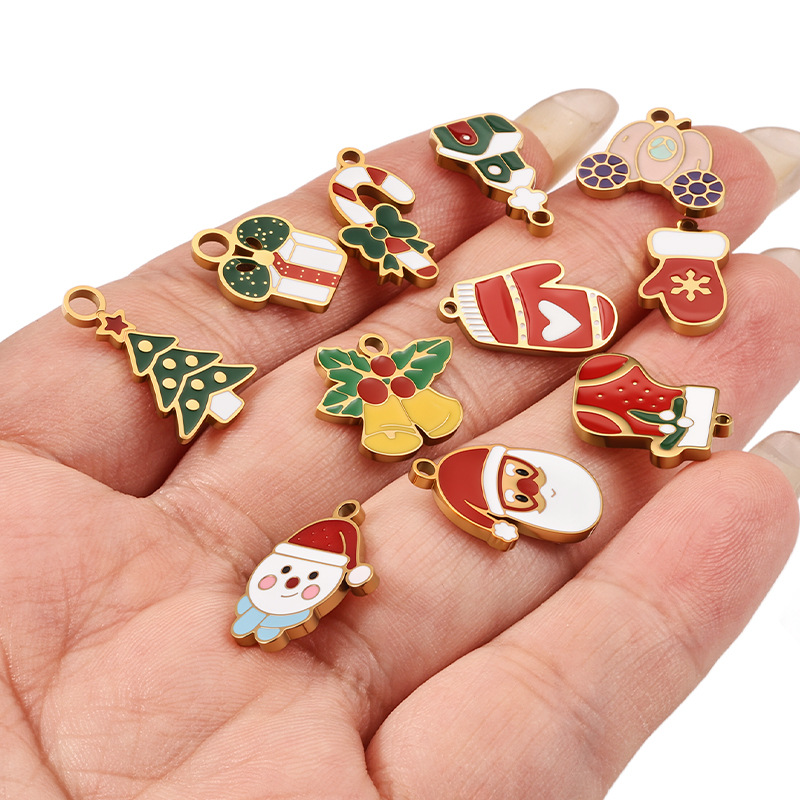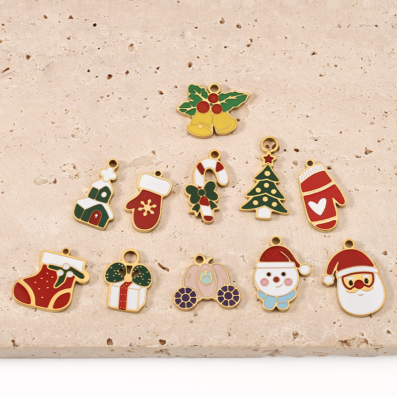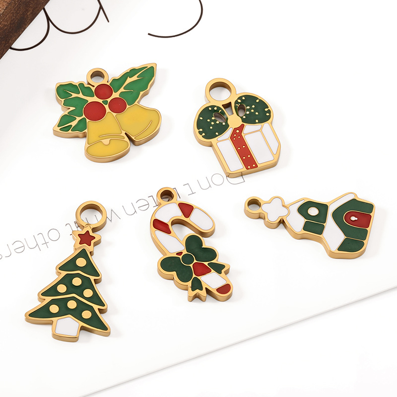 Pendentifs en acier inoxydable émail, Acier inoxydable 304, Placage de couleur d'or, Conception de Noël & DIY, plus de couleurs à choisir, Vendu par PC