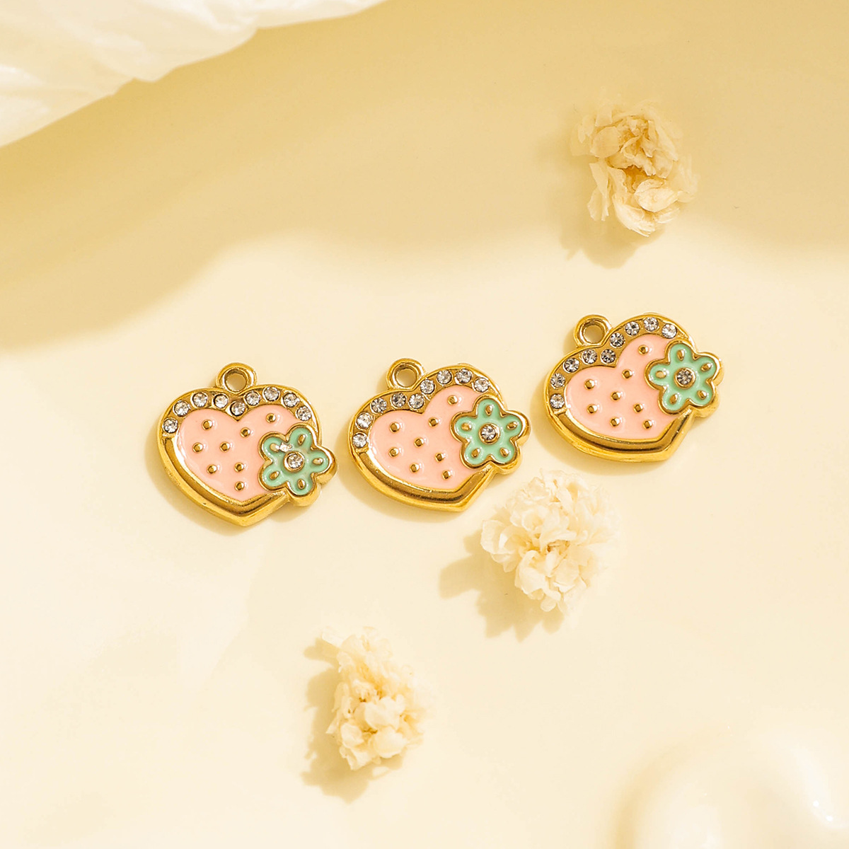 Pendentifs en acier inoxydable émail, Acier inoxydable 304, coeur, Placage de couleur d'or, DIY & pavé de micro zircon, couleurs mélangées, 10PC/sac, Vendu par sac