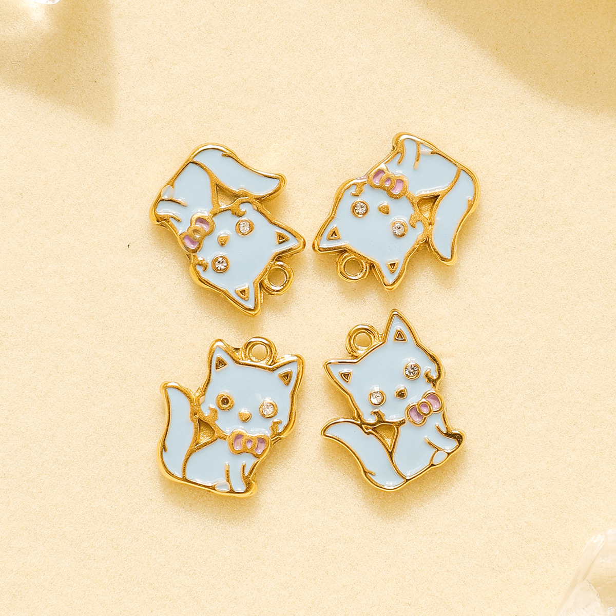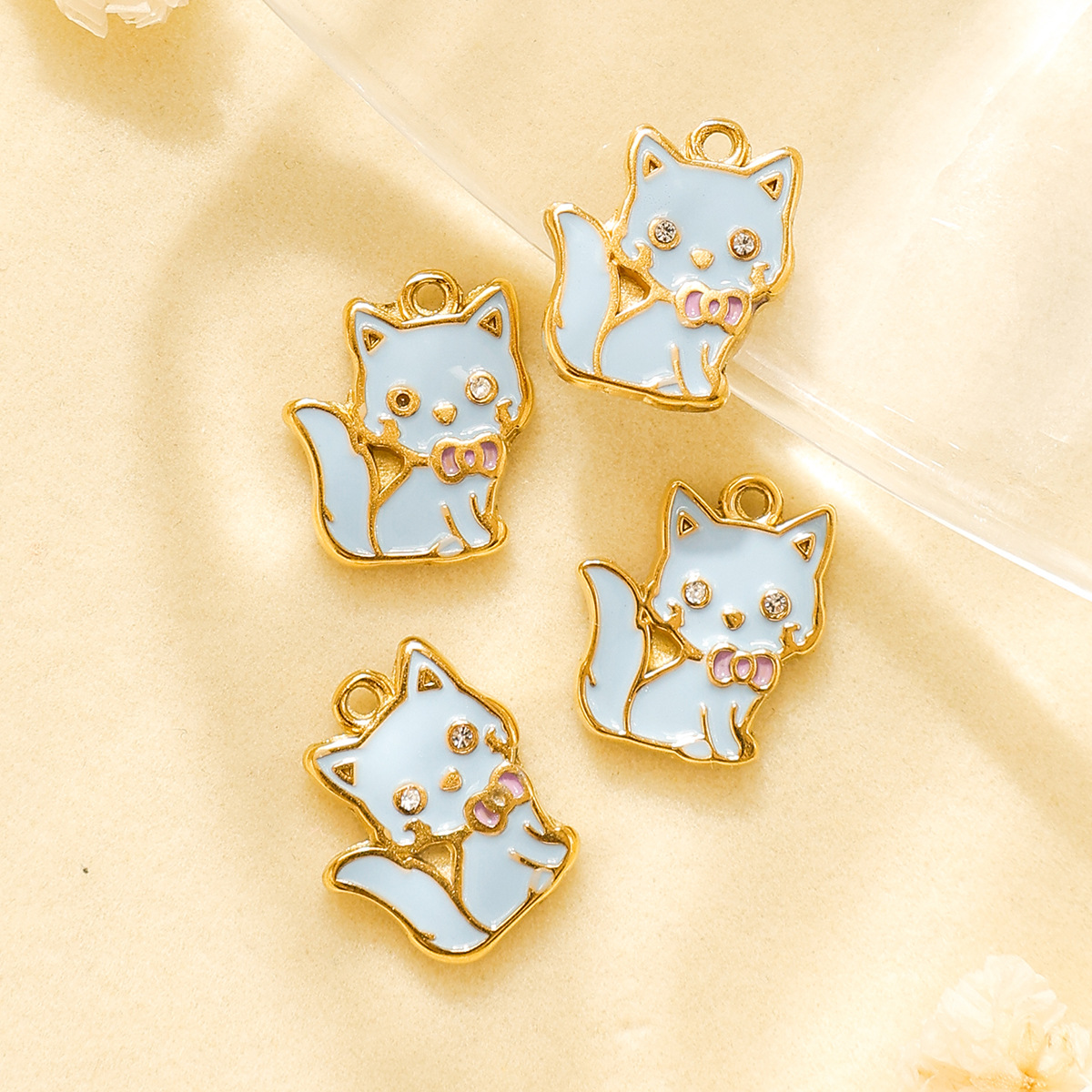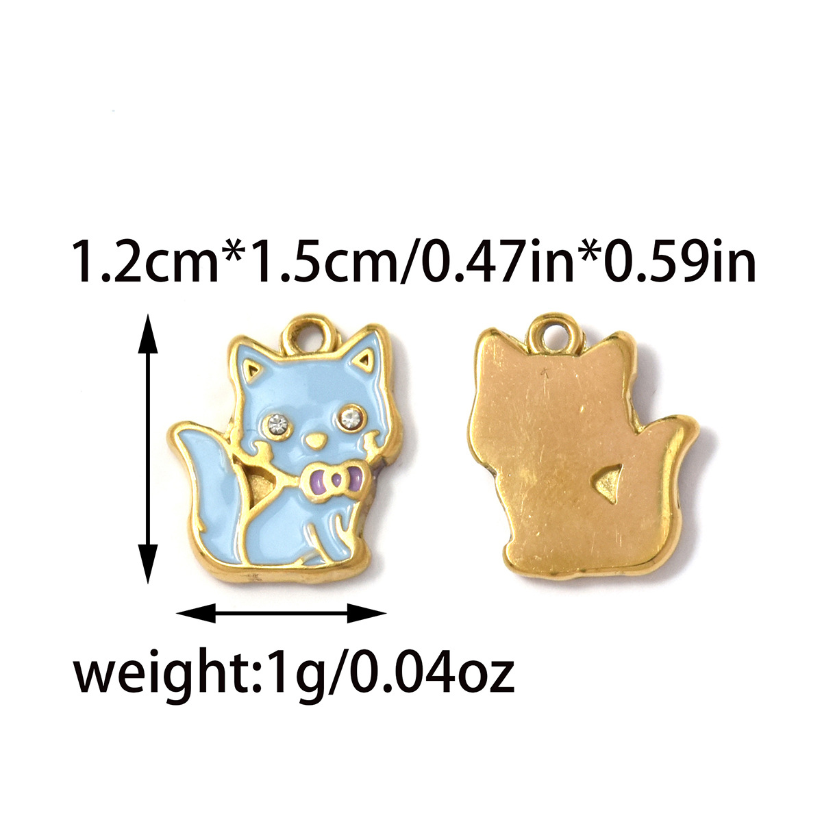 Pendentifs en acier inoxydable émail, Acier inoxydable 304, chat, Placage de couleur d'or, DIY & pavé de micro zircon, couleurs mélangées, 10PC/sac, Vendu par sac