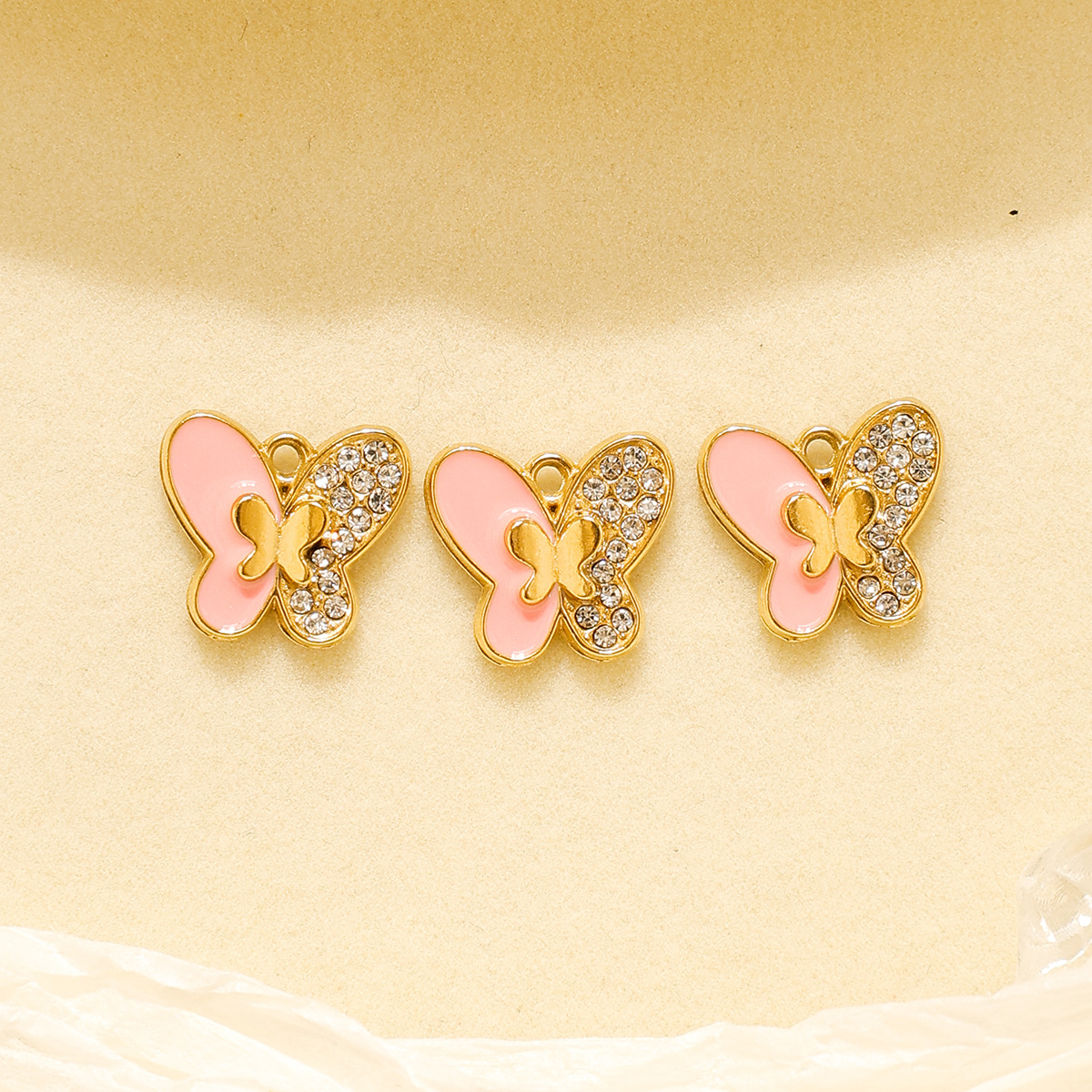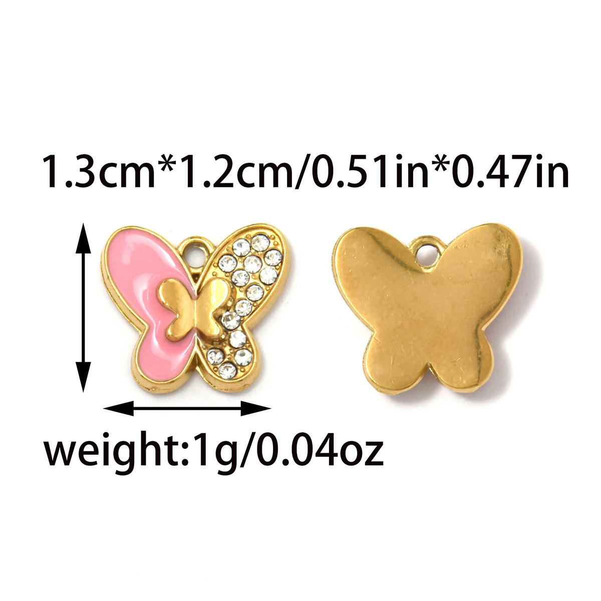 Pendentifs en acier inoxydable émail, Acier inoxydable 304, papillon, Placage de couleur d'or, DIY & avec strass, couleurs mélangées, 10PC/sac, Vendu par sac