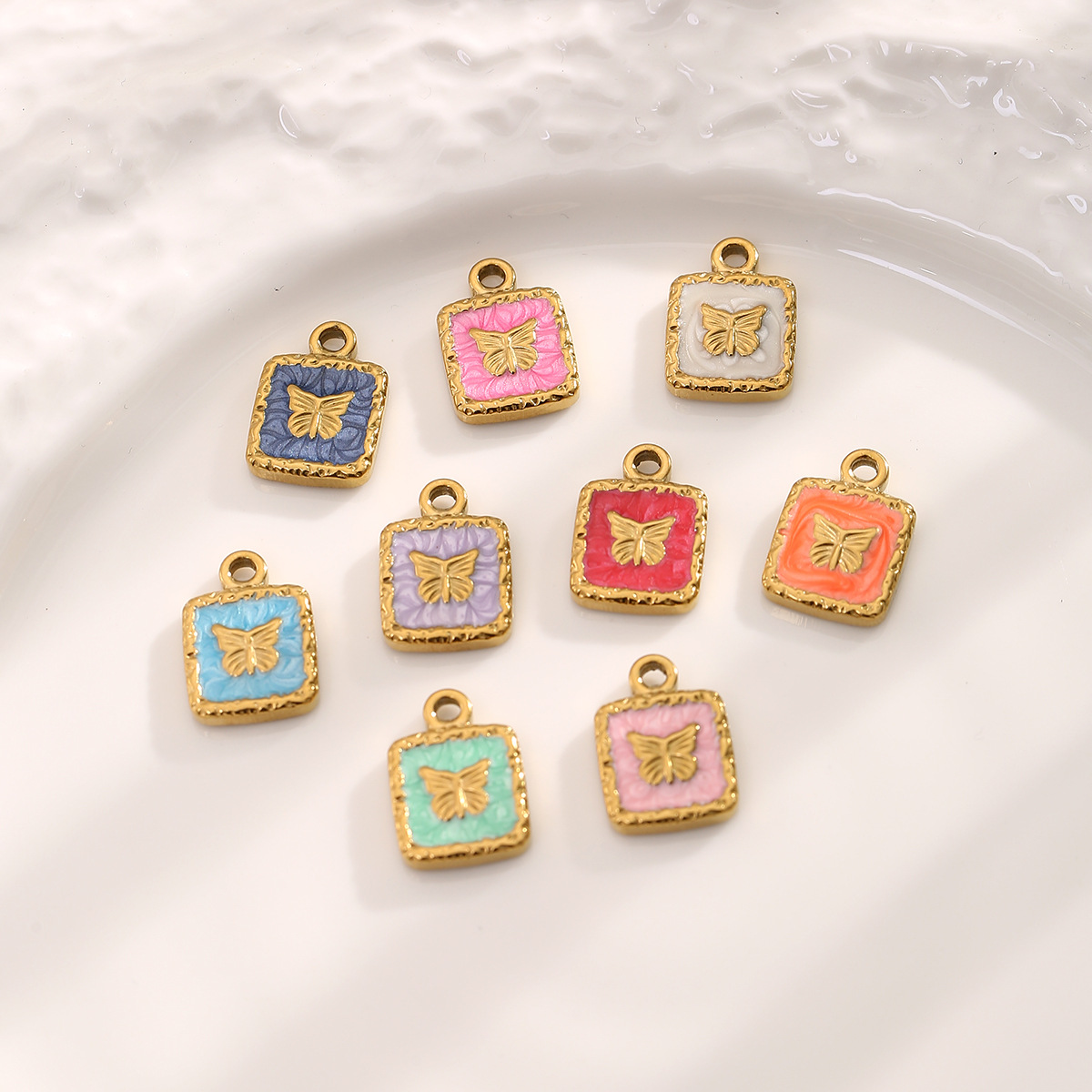 Pendentifs en acier inoxydable émail, Acier inoxydable 304, papillon, Placage, DIY, plus de couleurs à choisir, 10PC/sac, Vendu par sac