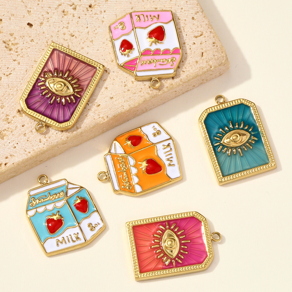 Pendentifs en acier inoxydable émail, Acier inoxydable 304, Placage de couleur d'or, DIY & styles différents pour le choix, 3PC/sac, Vendu par sac
