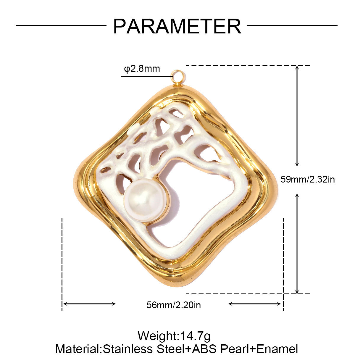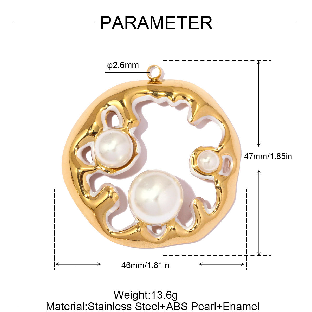 Pendentifs en acier inoxydable émail, Acier inoxydable 304, avec Plastique ABS perle, Placage de couleur d'or, DIY & styles différents pour le choix & creux, 3PC/sac, Vendu par sac