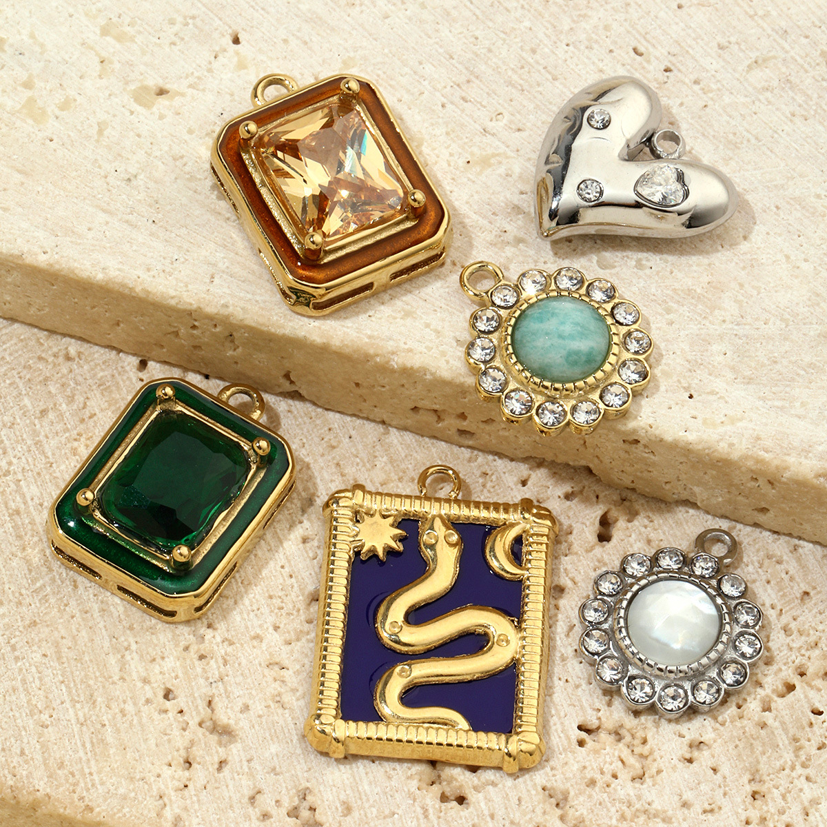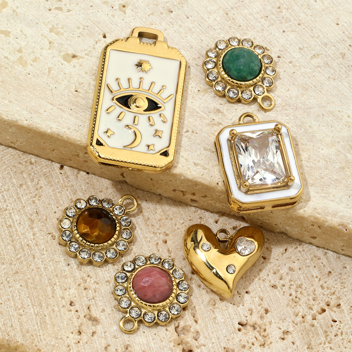 Pendentifs en acier inoxydable strass, Acier inoxydable 304, avec zircon cubique & pierre gemme & coquille, Placage ionique sous vide, Forme différente pour le choix & DIY & émail & avec strass, plus de couleurs à choisir, 6PC/sac, Vendu par sac