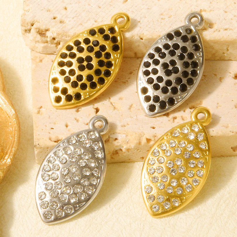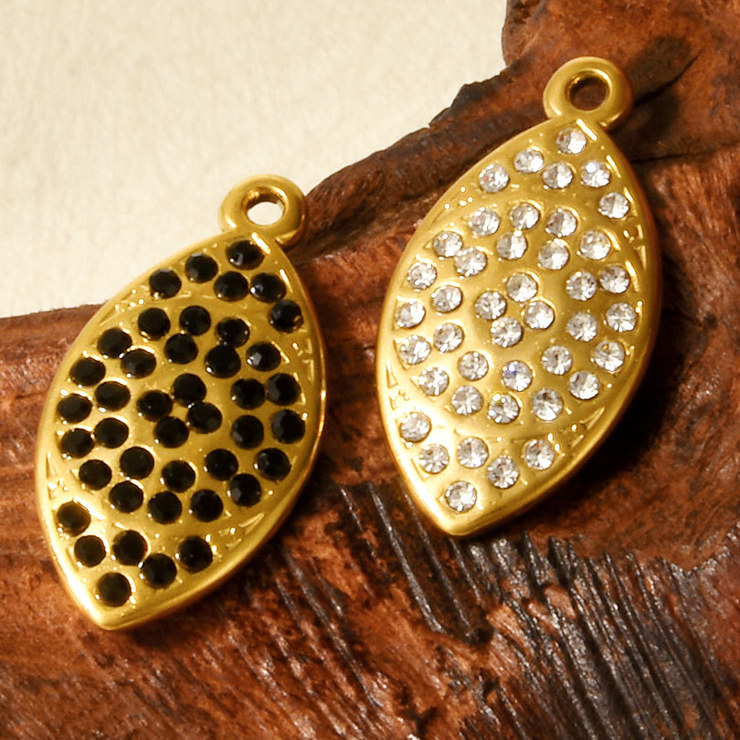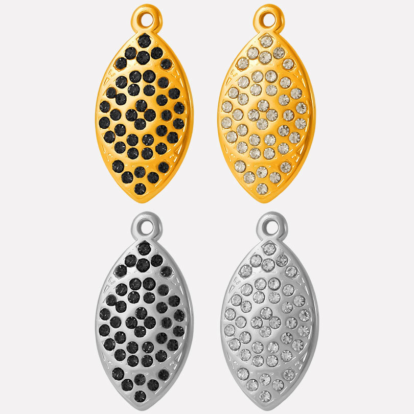 Pendentifs en acier inoxydable strass, Acier inoxydable 304, oeil de cheval, Placage ionique sous vide, DIY & avec strass, plus de couleurs à choisir, 13x26x2.3mm, Trou:Environ 1.2mm, 10PC/sac, Vendu par sac
