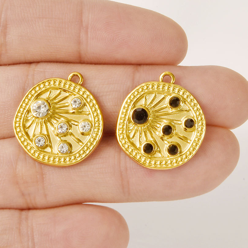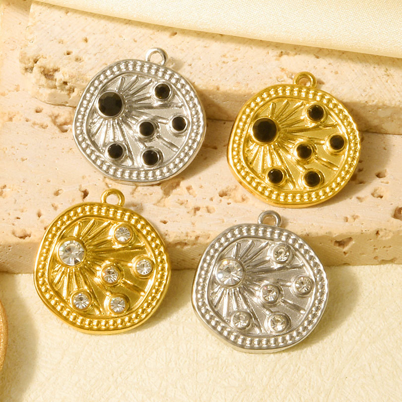 Pendentifs en acier inoxydable strass, avec acier inoxydable, Rond, normes différentes pour le choix Environ Vendu par PC