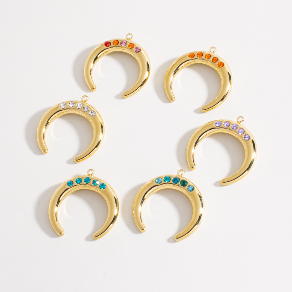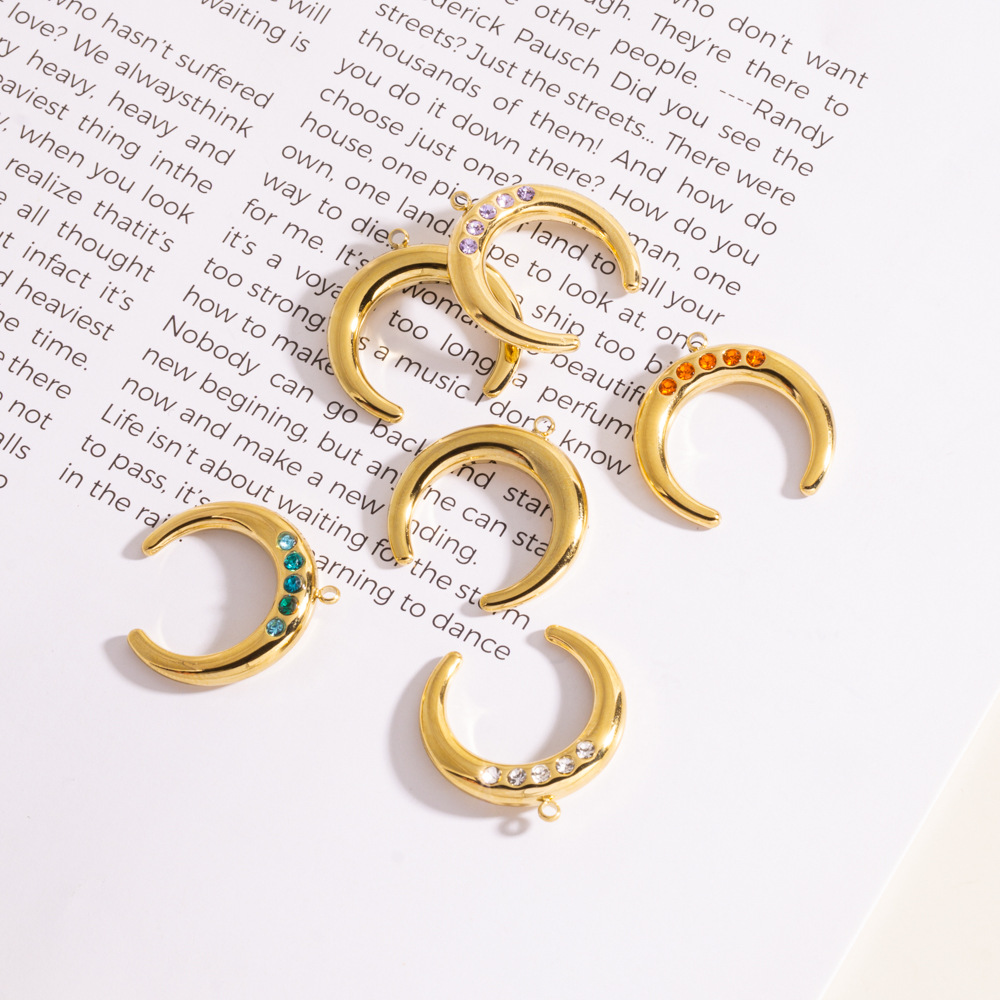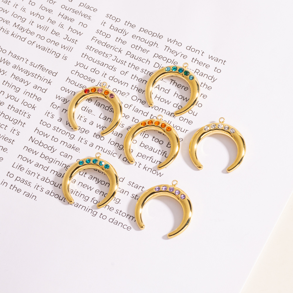 Pendentifs en acier inoxydable strass, Acier inoxydable 304, lune, Placage ionique sous vide, DIY & avec strass, plus de couleurs à choisir, 22x22.5mm, 10PC/sac, Vendu par sac
