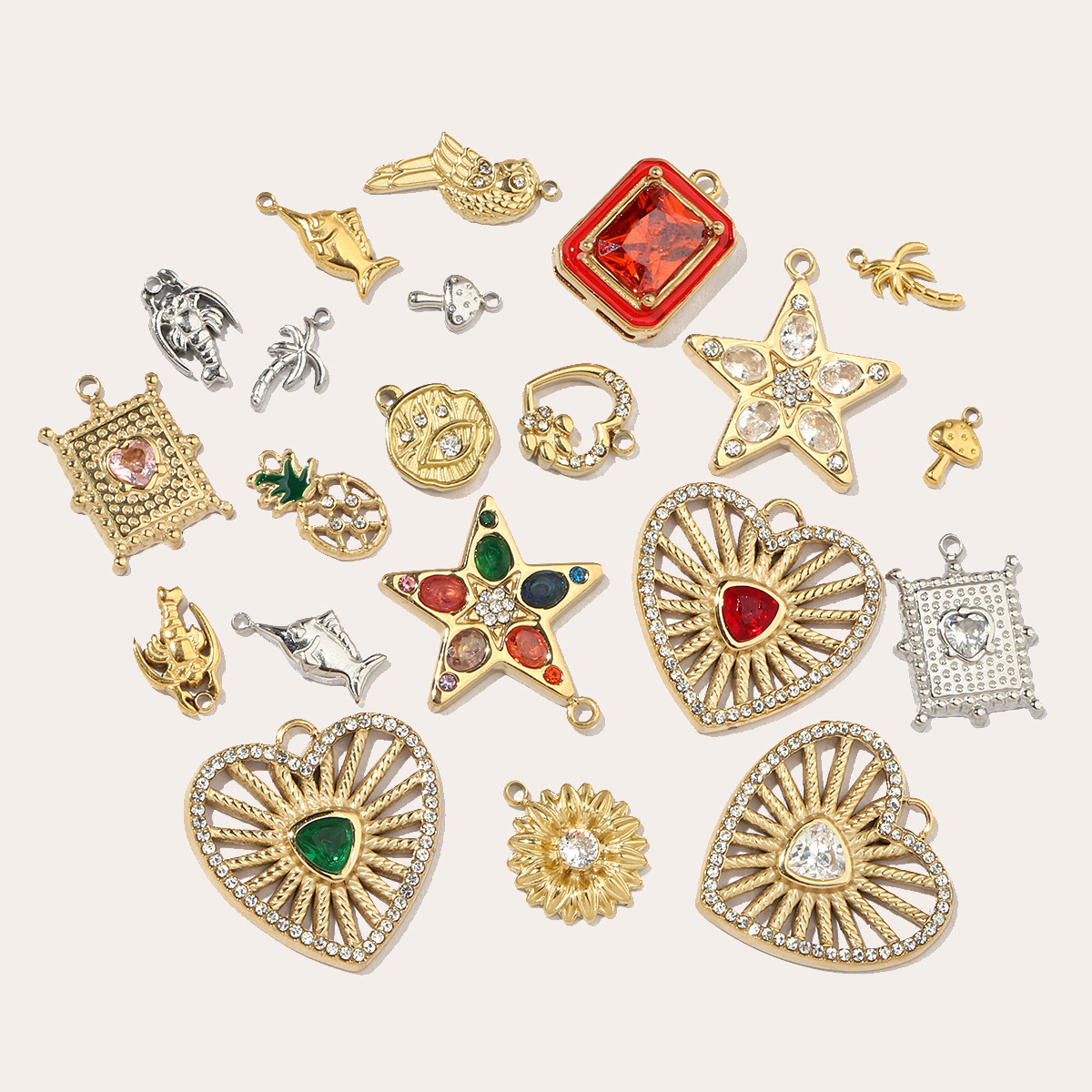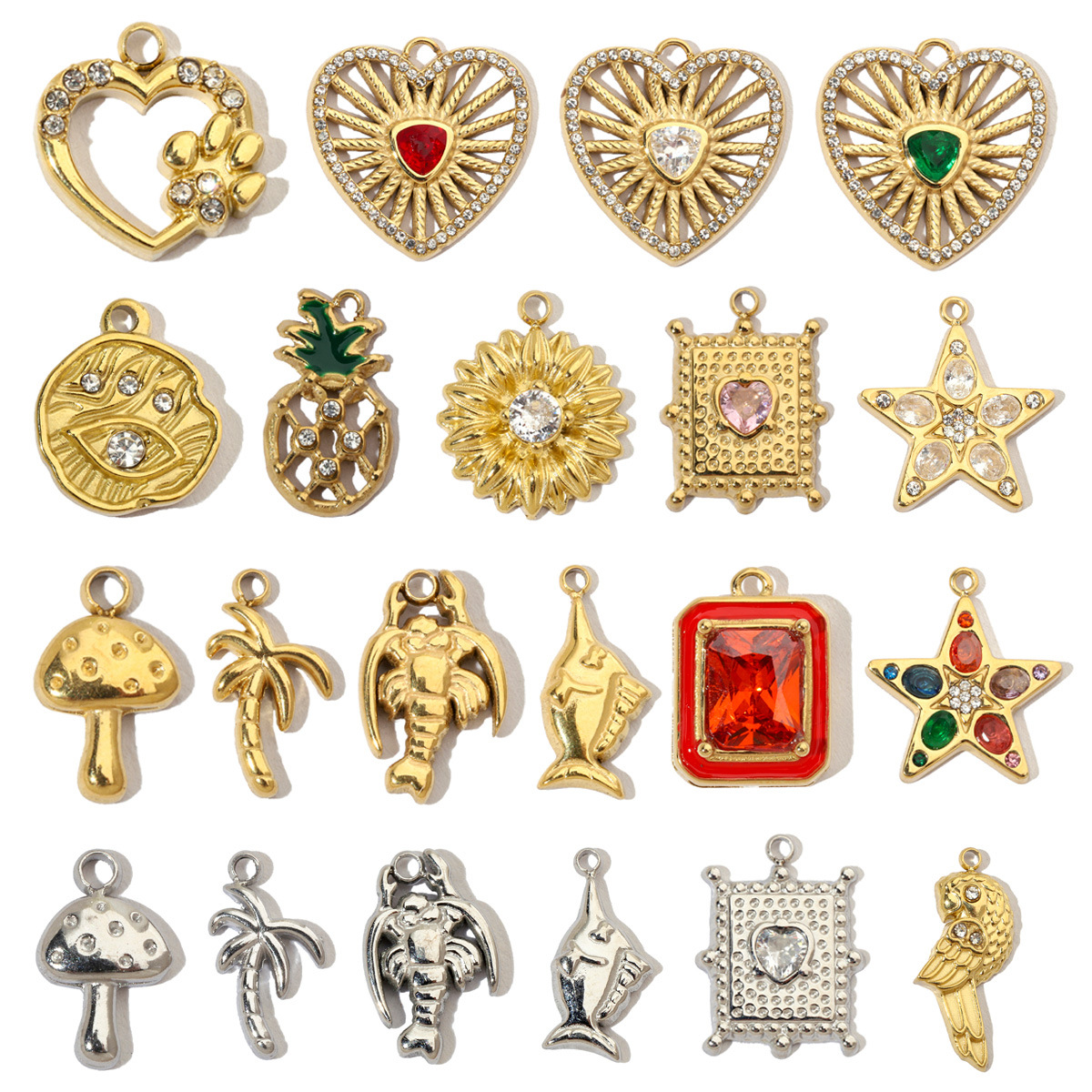 Pendentifs en acier inoxydable strass, Acier inoxydable 304, Placage ionique sous vide, DIY & pavé de micro zircon & avec strass, plus de couleurs à choisir, 3PC/sac, Vendu par sac