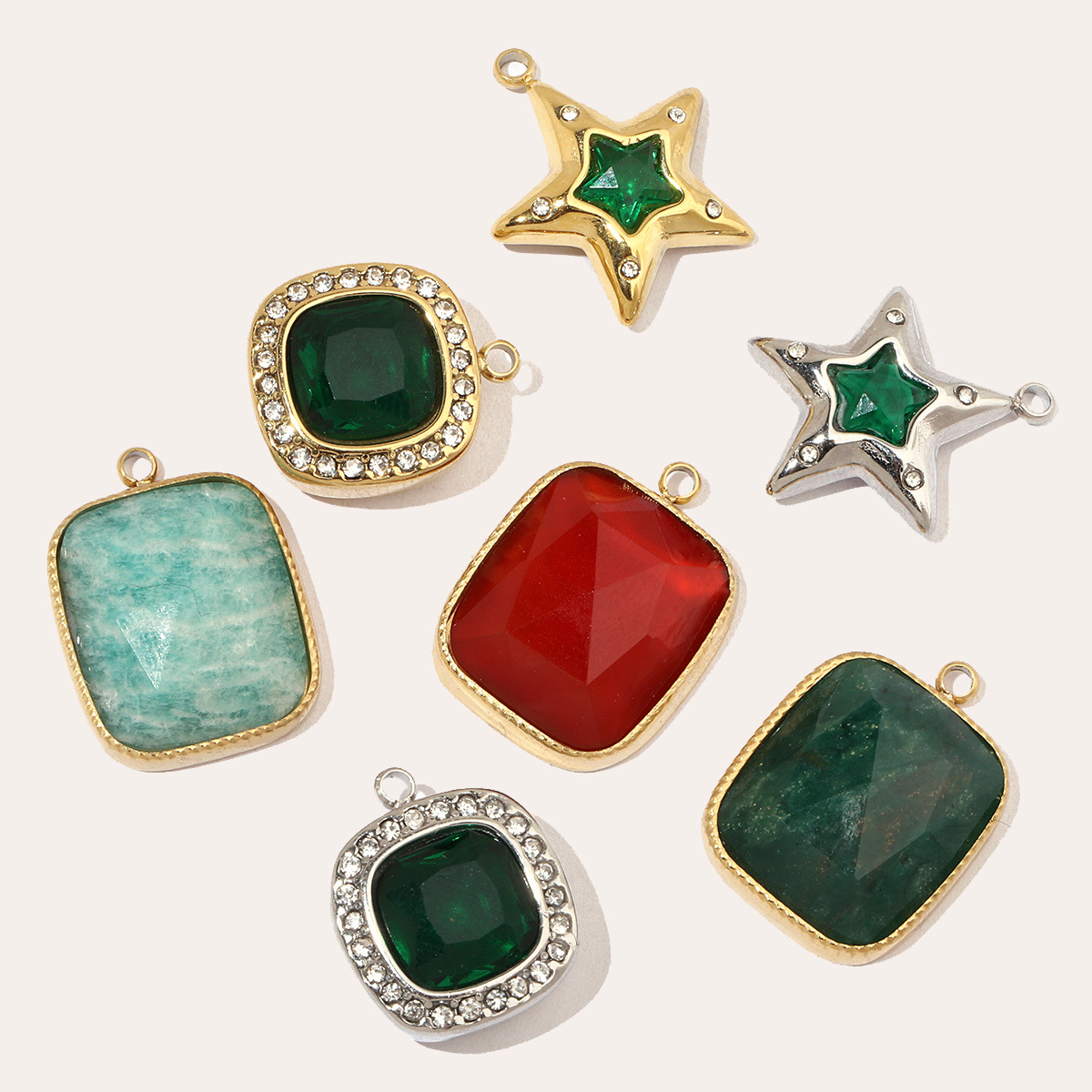 Pendentifs en acier inoxydable strass, Acier inoxydable 304, avec pierre gemme, Placage ionique sous vide, Forme différente pour le choix & DIY & pavé de micro zircon & avec strass, plus de couleurs à choisir, 3PC/sac, Vendu par sac