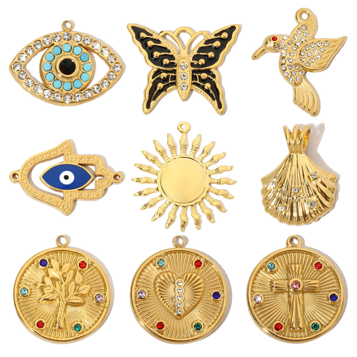 Pendentifs en acier inoxydable strass, Acier inoxydable 304, Placage ionique sous vide, Forme différente pour le choix & DIY & émail & avec strass, plus de couleurs à choisir, 3PC/sac, Vendu par sac