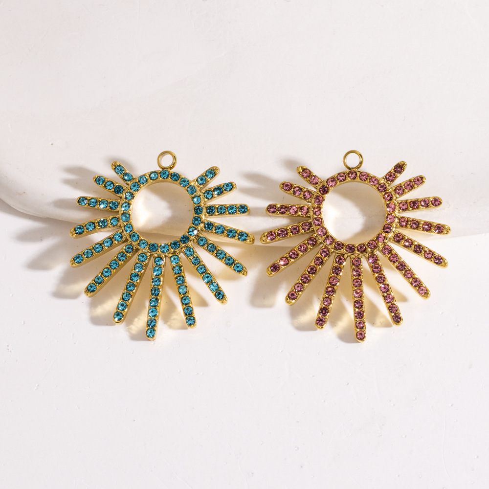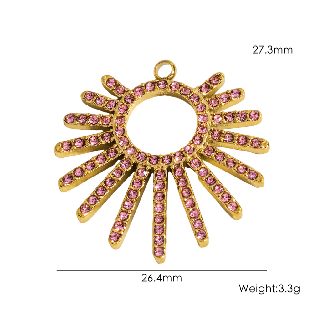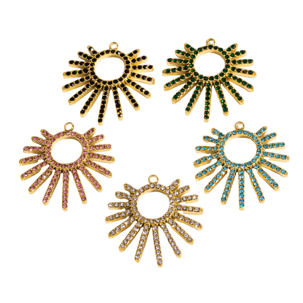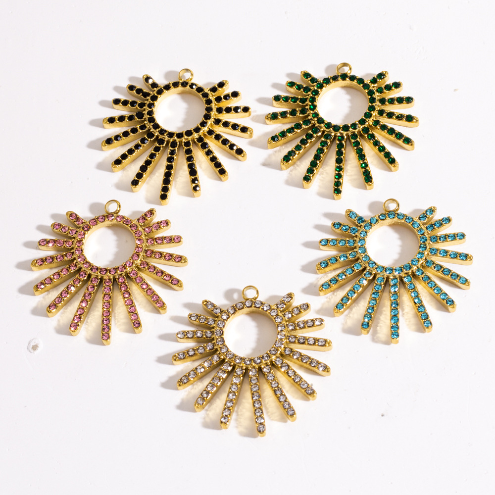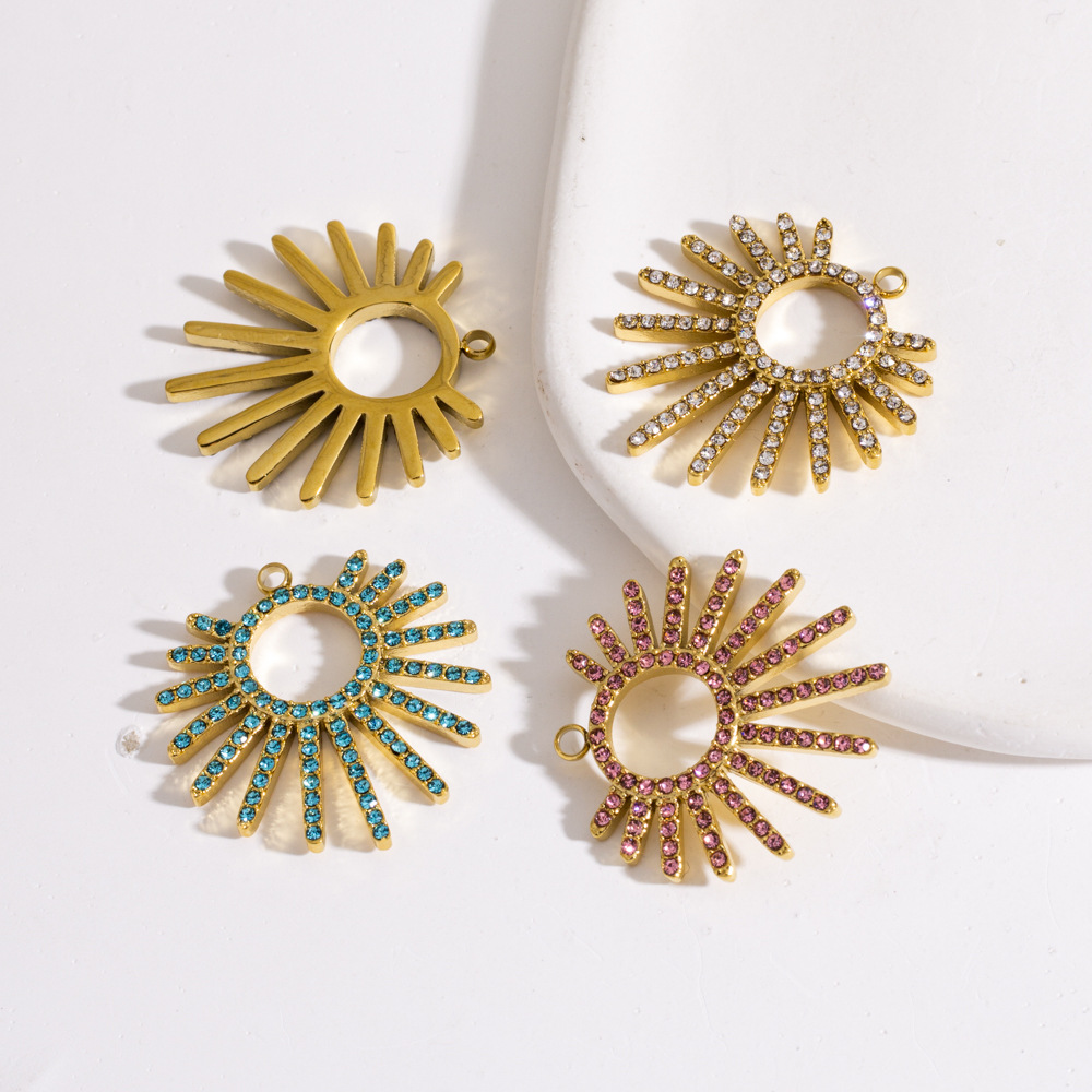 Pendentifs en acier inoxydable strass, Acier inoxydable 304, soleil, Placage ionique sous vide, DIY & avec strass, plus de couleurs à choisir, 26.4x27.3mm, 10PC/sac, Vendu par sac