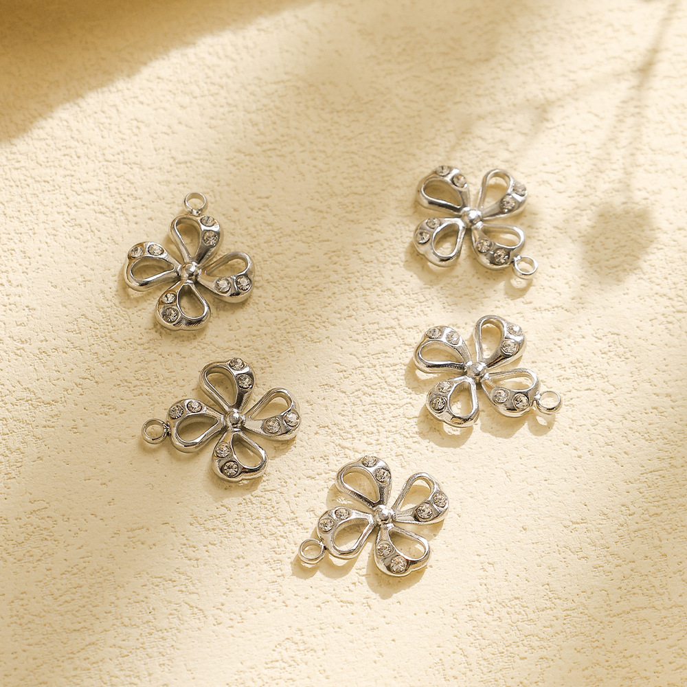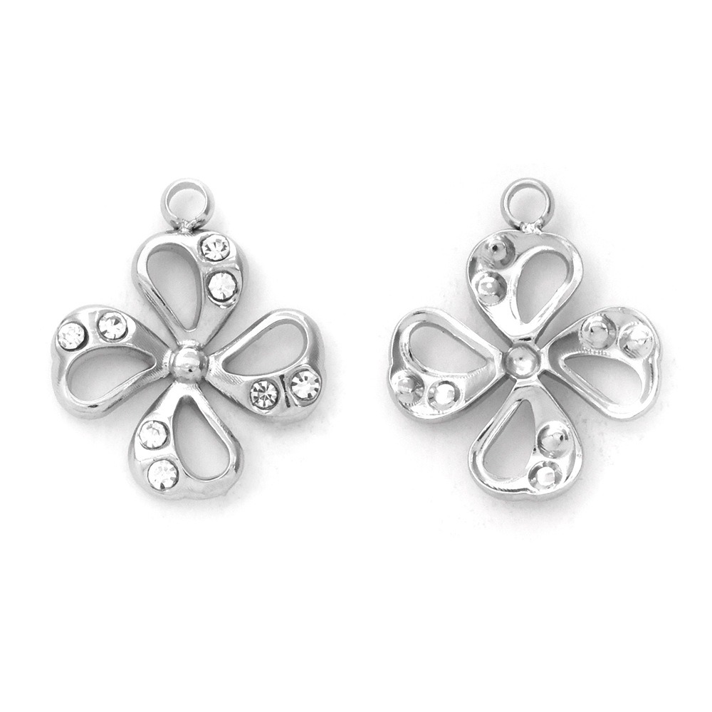Pendentifs en acier inoxydable strass, Acier inoxydable 304, Trèfle à quatre feuilles, Placage, DIY & avec strass, plus de couleurs à choisir, 10PC/sac, Vendu par sac