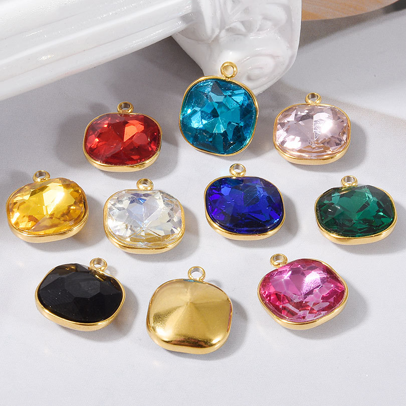 Pendentifs en acier inoxydable strass, Acier inoxydable 304, avec Perceuse à eau en verre, Placage ionique sous vide, DIY, plus de couleurs à choisir, 16x13mm, 10PC/sac, Vendu par sac