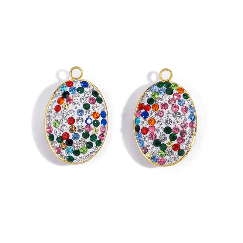 Pendentifs en acier inoxydable strass, Acier inoxydable 304, ellipse, Placage, DIY & avec strass, plus de couleurs à choisir, 100PC/sac, Vendu par sac