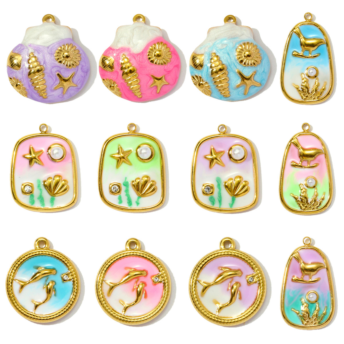 Pendentifs en acier inoxydable strass, Acier inoxydable 304, avec Plastique ABS perle, Placage, DIY & émail & avec strass, plus de couleurs à choisir, 3PC/sac, Vendu par sac