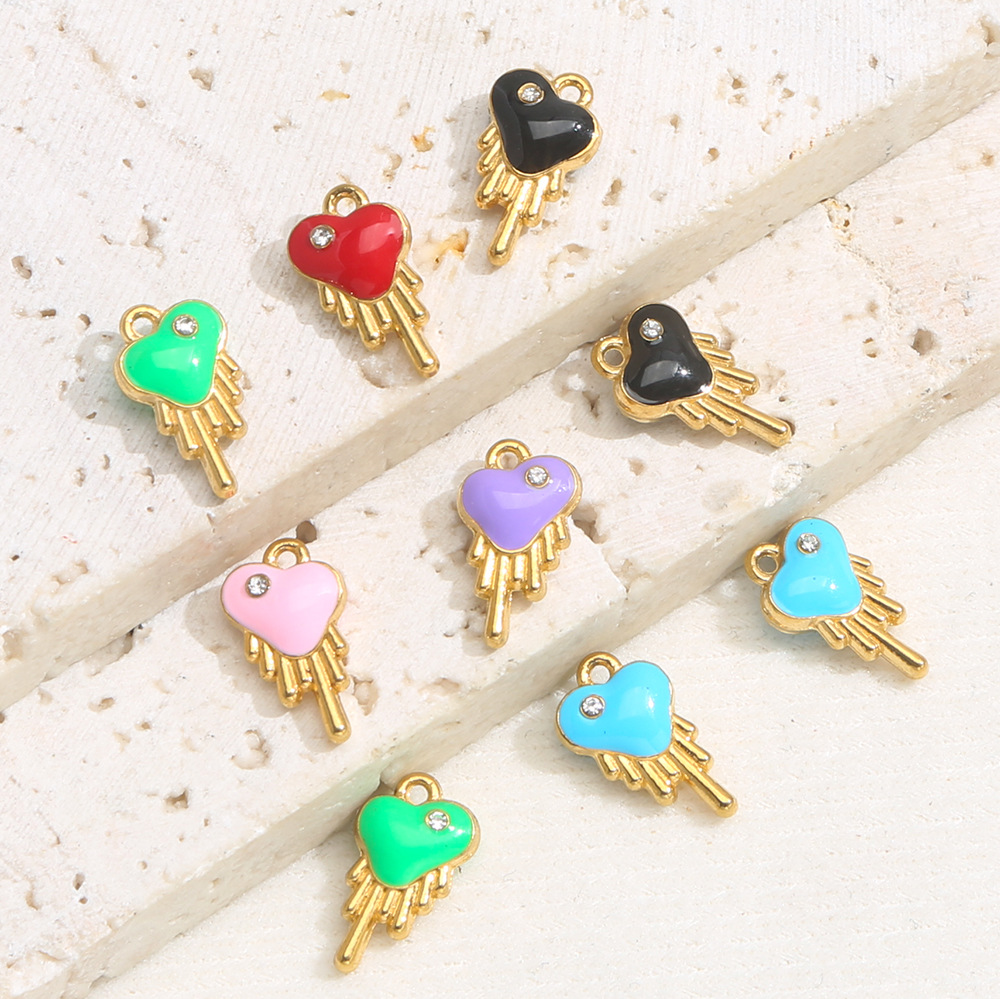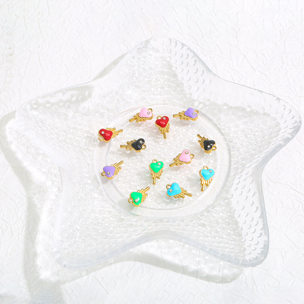 Pendentifs en acier inoxydable strass, Acier inoxydable 304, coeur, Placage de couleur d'or, DIY & émail & avec strass, doré, 10PC/sac, Vendu par sac