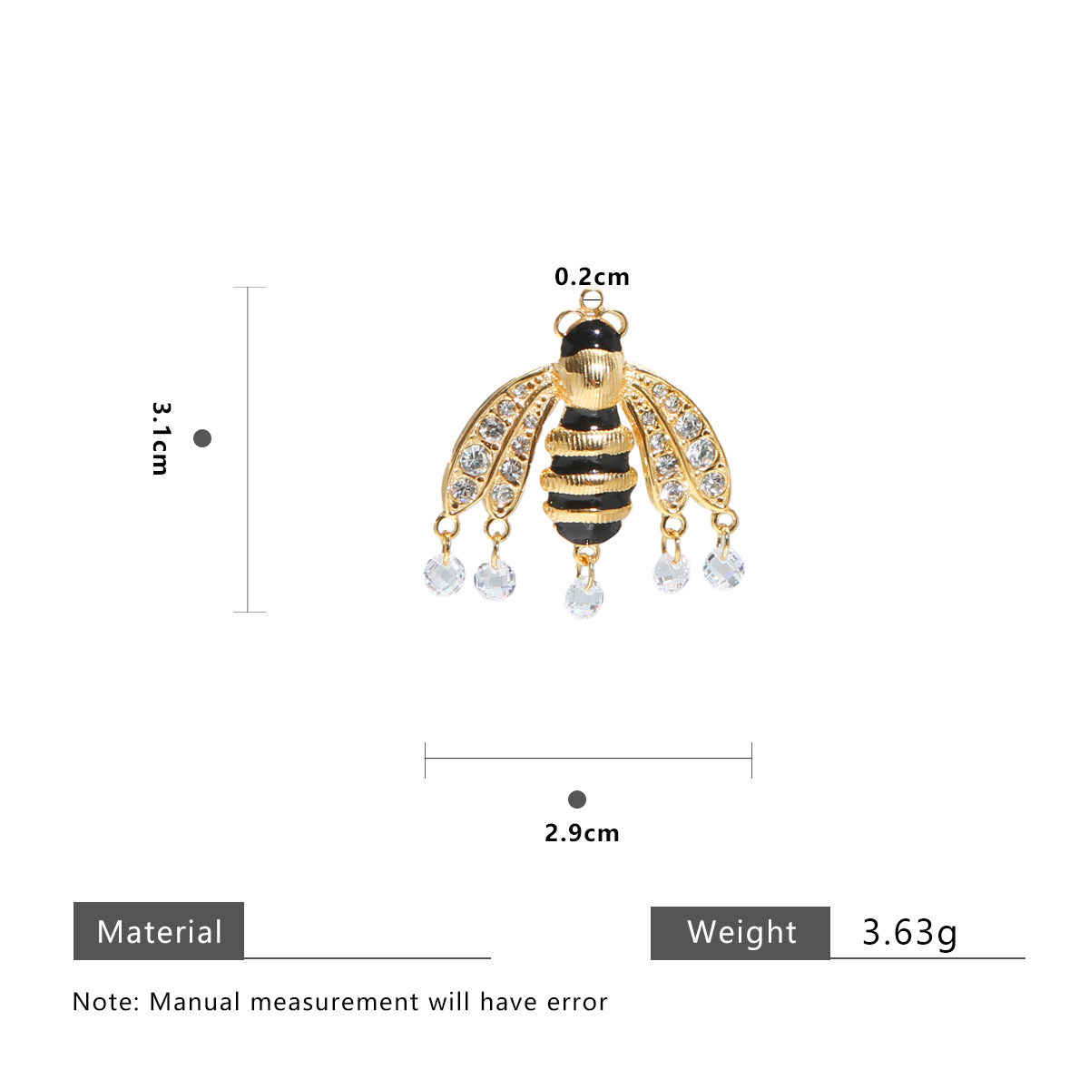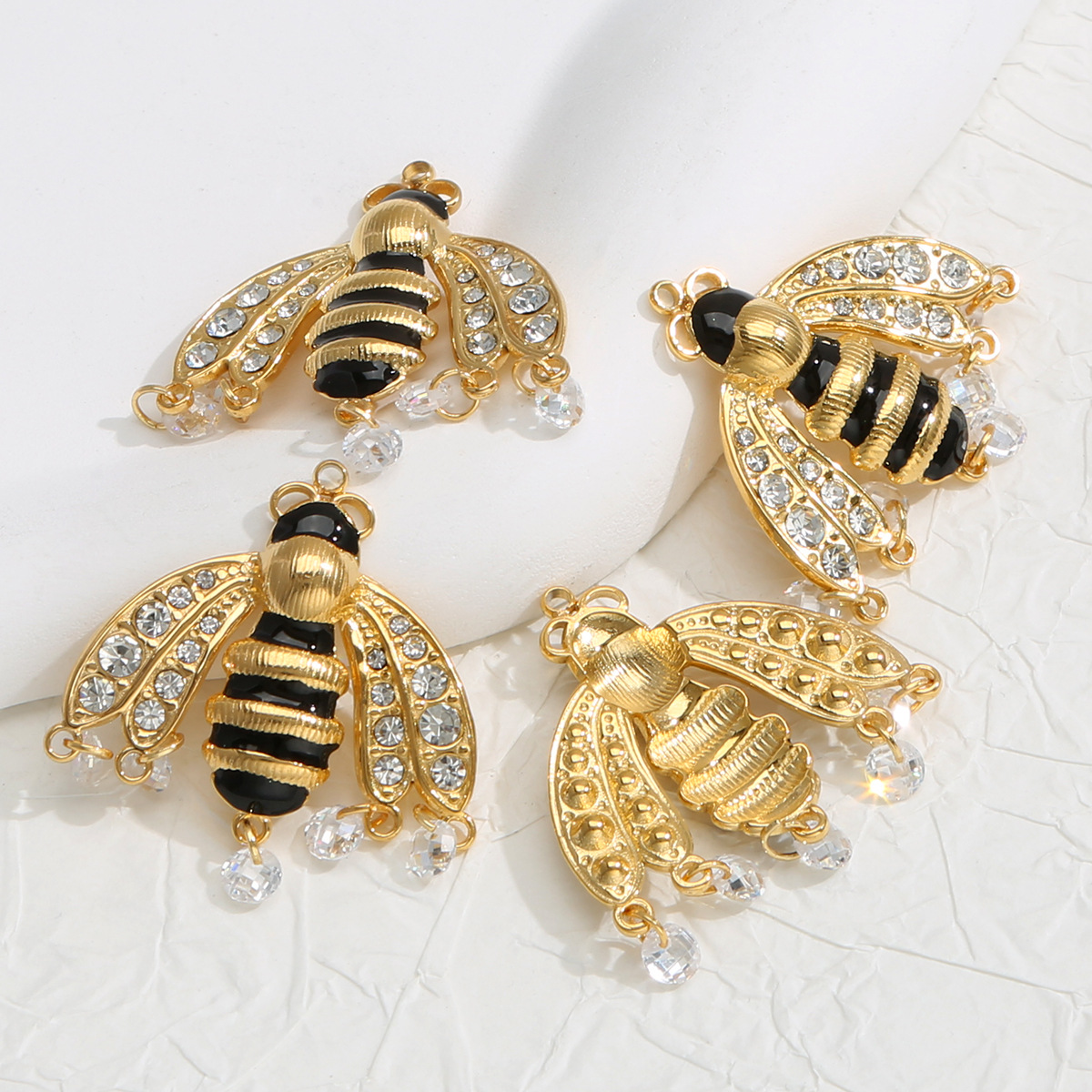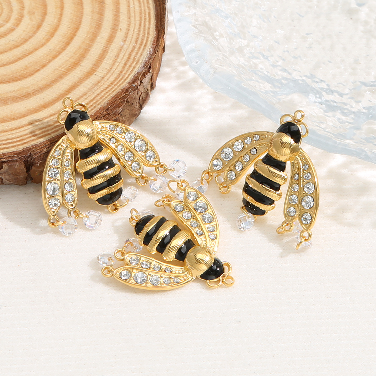 Pendentifs en acier inoxydable strass, Acier inoxydable 304, abeille, Placage de couleur d'or, DIY & émail & avec strass, doré, 10PC/sac, Vendu par sac