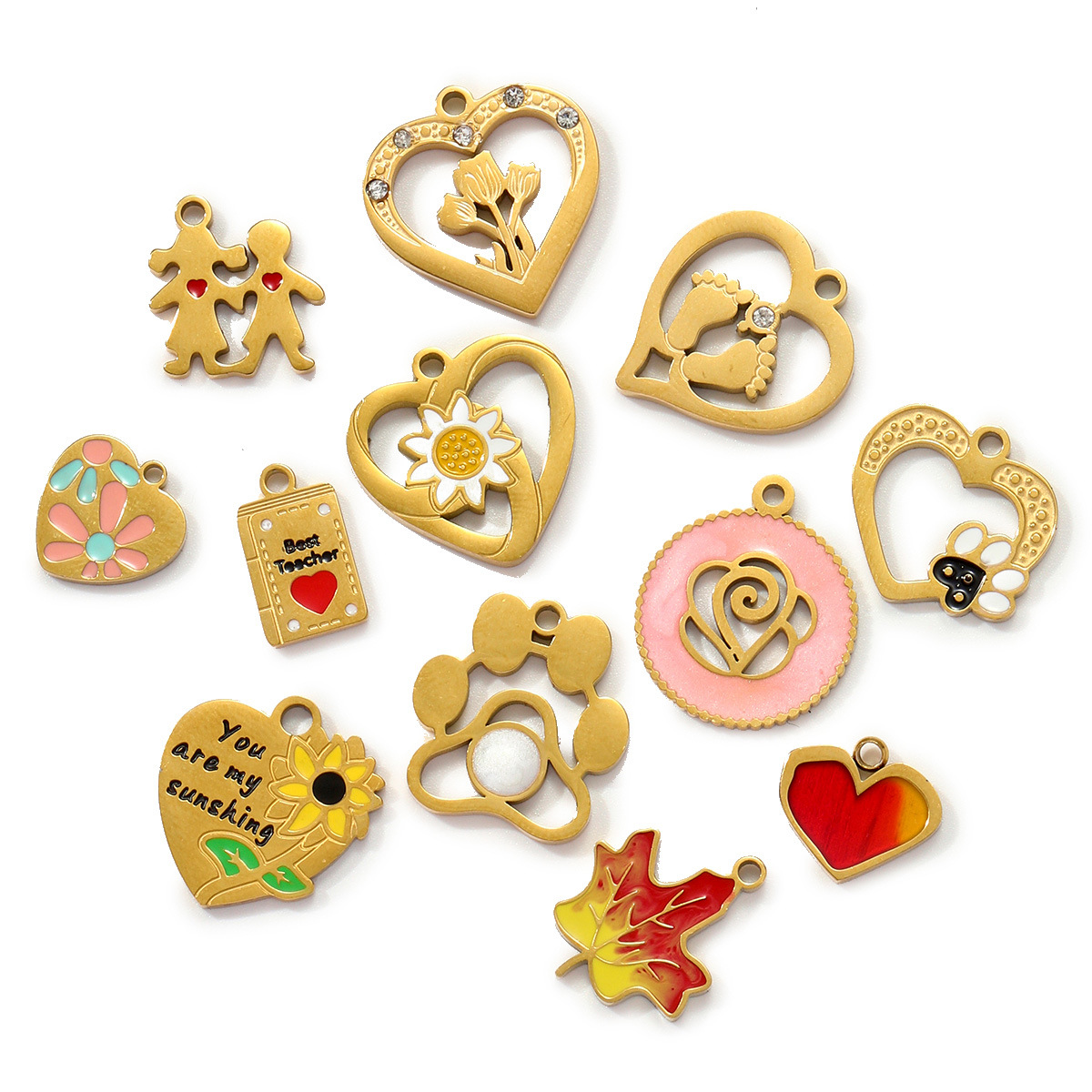 Pendentifs en acier inoxydable strass, Acier inoxydable 304, Placage de couleur d'or, DIY & émail & avec strass, plus de couleurs à choisir, 3PC/sac, Vendu par sac