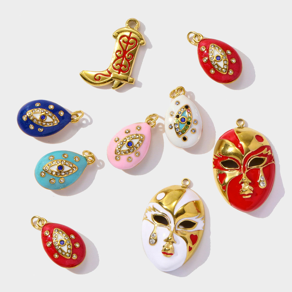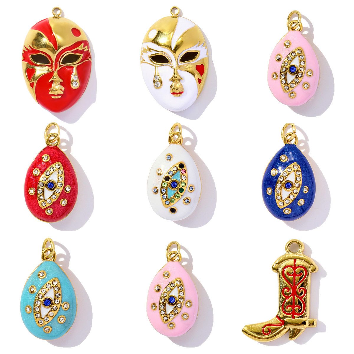 Pendentifs en acier inoxydable strass, Acier inoxydable 304, Placage de couleur d'or, DIY & pavé de micro zircon & émail & avec strass, plus de couleurs à choisir, 3PC/sac, Vendu par sac