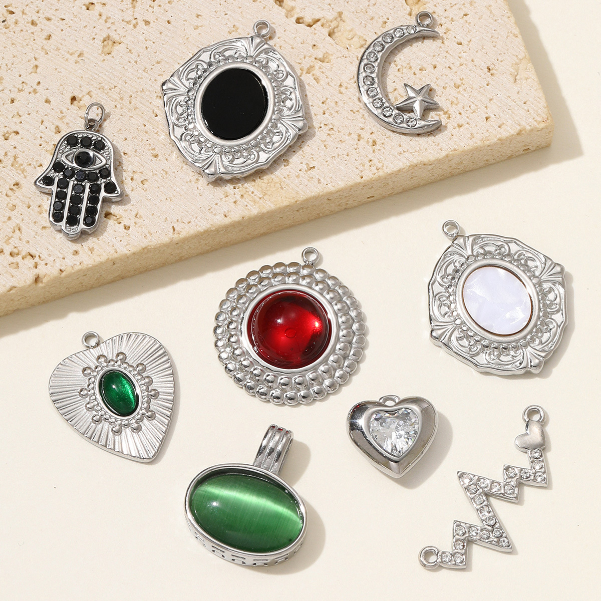 Pendentifs en acier inoxydable strass, Acier inoxydable 304, avec Oeil de chat & résine, Placage, DIY & pavé de micro zircon & avec strass, plus de couleurs à choisir, 3PC/sac, Vendu par sac
