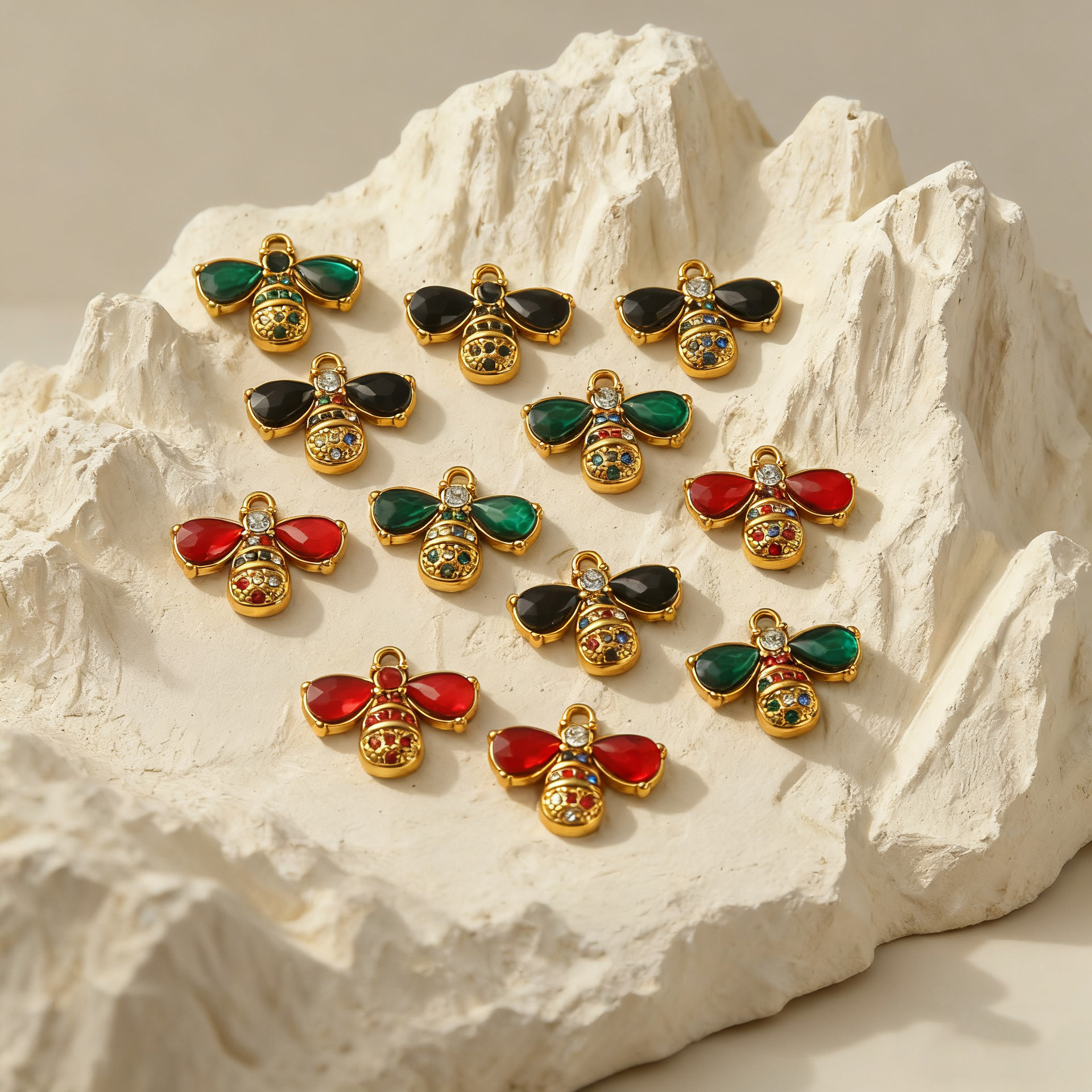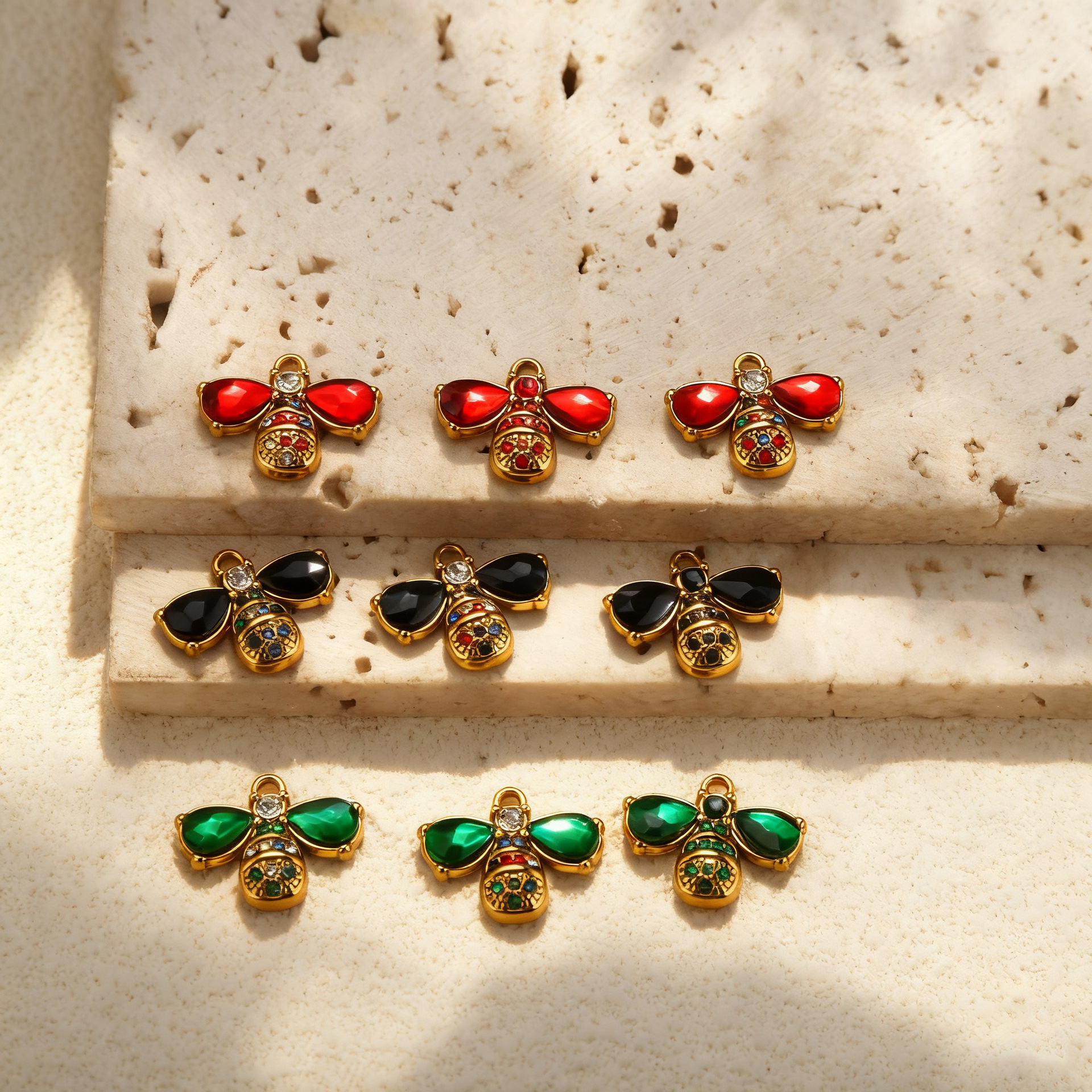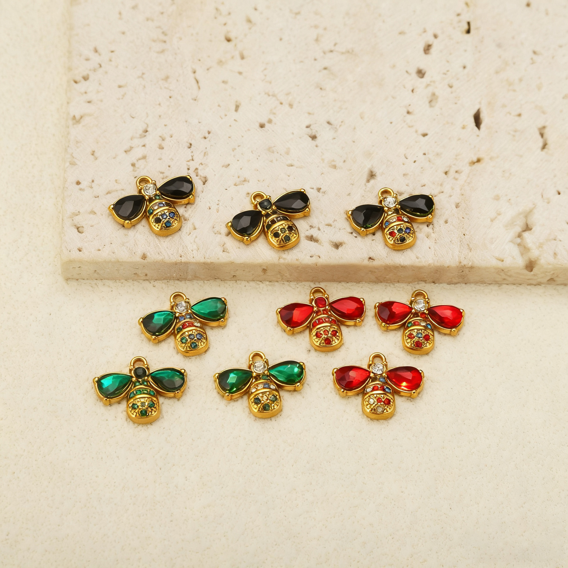 Pendentifs en acier inoxydable strass, Acier inoxydable 304, abeille, Placage, DIY & avec strass, plus de couleurs à choisir, 3PC/sac, Vendu par sac