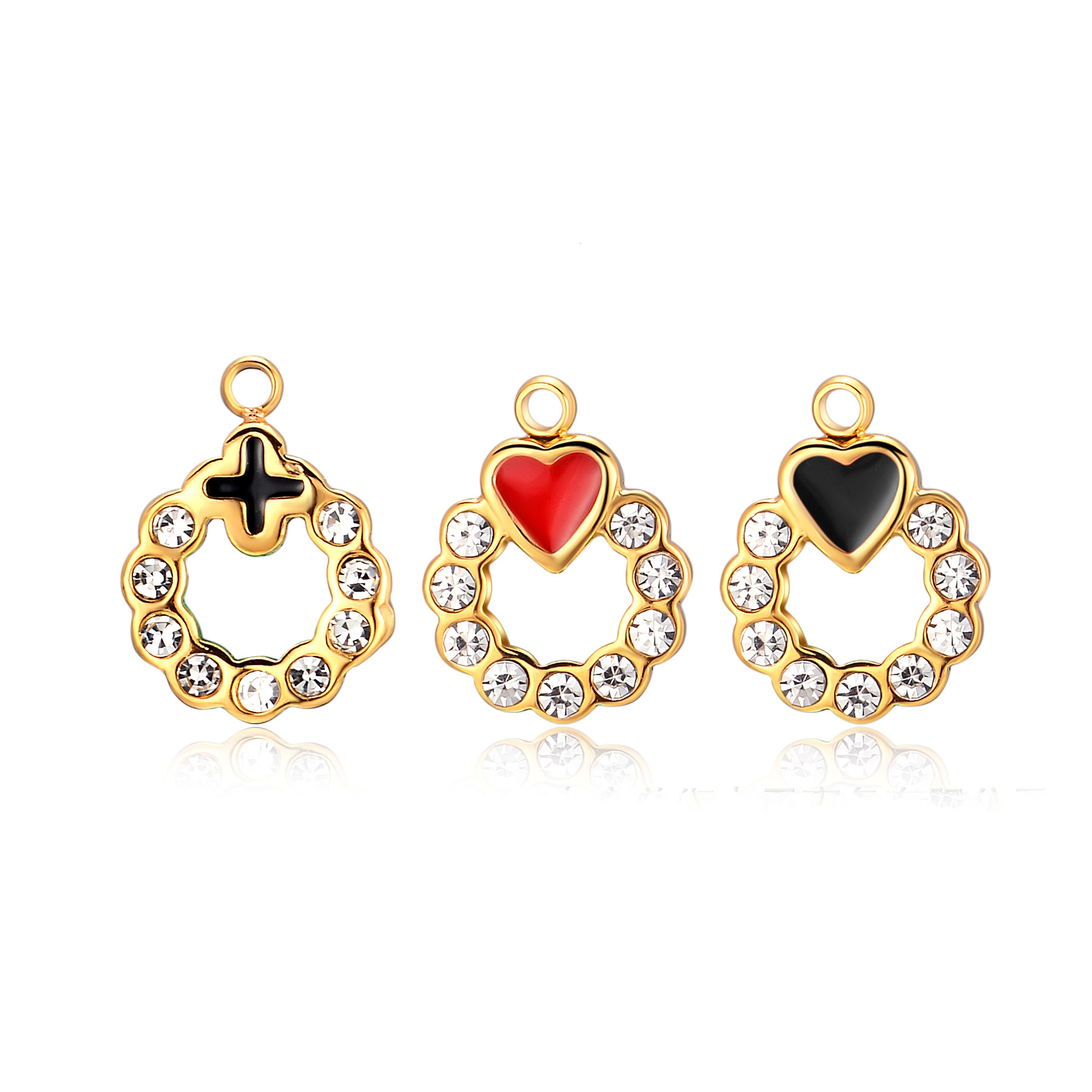 Pendentifs en acier inoxydable strass, Acier inoxydable 304, Placage de couleur d'or, DIY & émail & avec strass, plus de couleurs à choisir, 5PC/sac, Vendu par sac