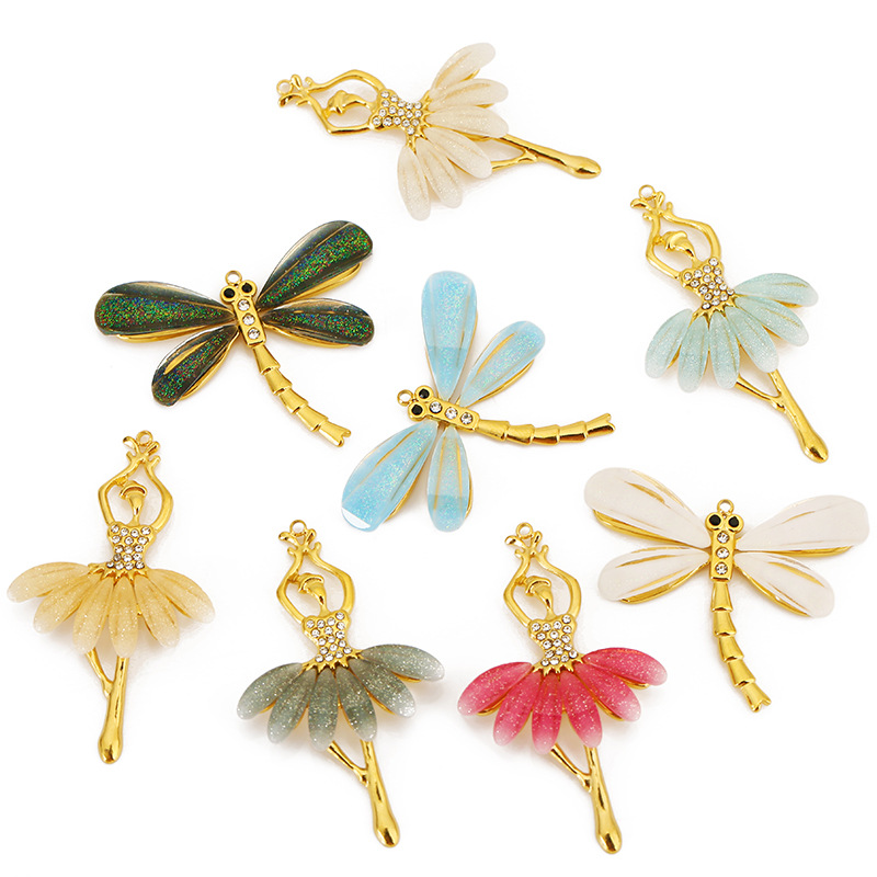 Pendentifs en acier inoxydable strass, Acier inoxydable 304, avec résine, Placage, DIY & pavé de micro zircon, plus de couleurs à choisir, 4PC/sac, Vendu par sac