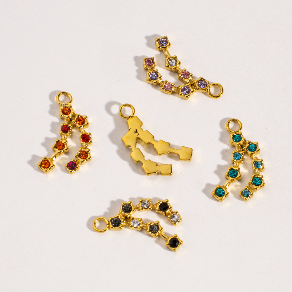 Pendentifs en acier inoxydable strass, Acier inoxydable 304, avec Tchèque, Placage de couleur d'or, DIY, plus de couleurs à choisir, 12.8x21.2mm, 10PC/sac, Vendu par sac