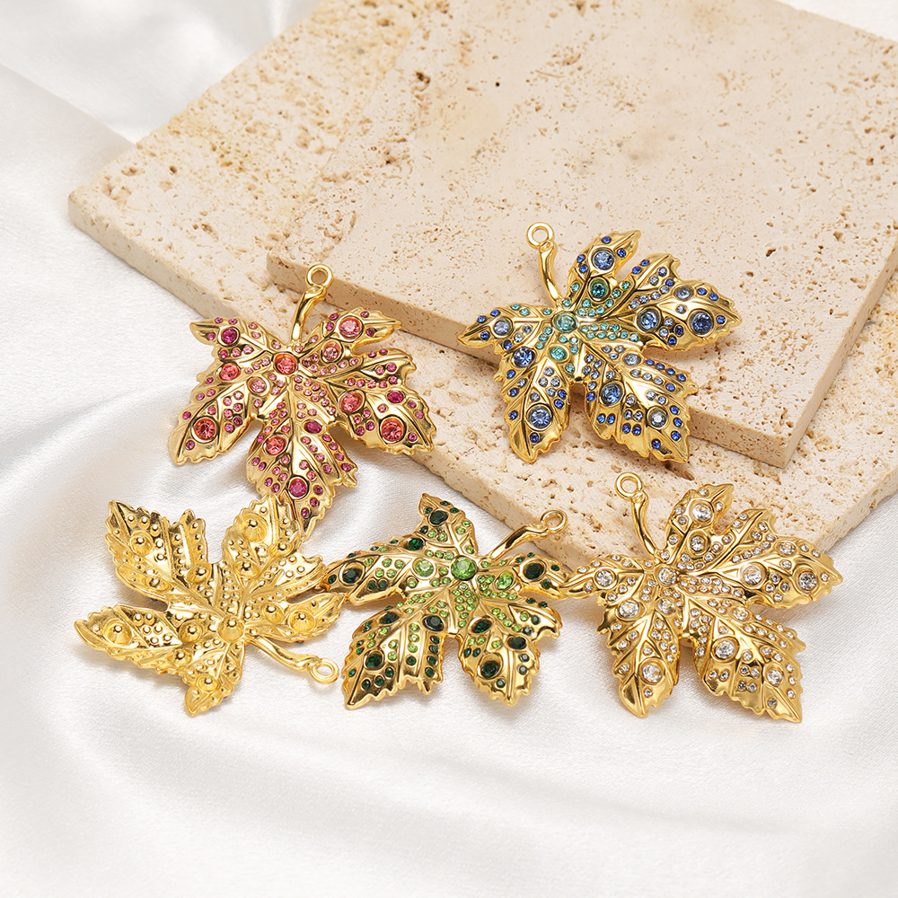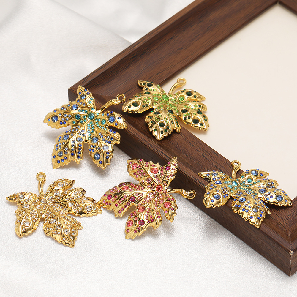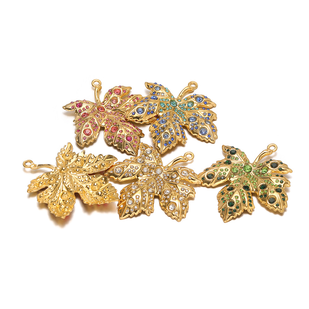 Pendentifs en acier inoxydable strass, Acier inoxydable 304, Feuille d'érable, Placage de couleur d'or, DIY & avec strass, plus de couleurs à choisir, 47x53mm, 10PC/sac, Vendu par sac