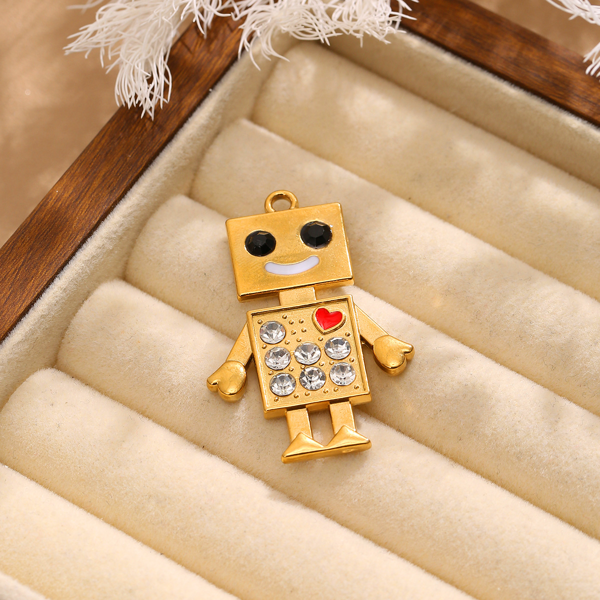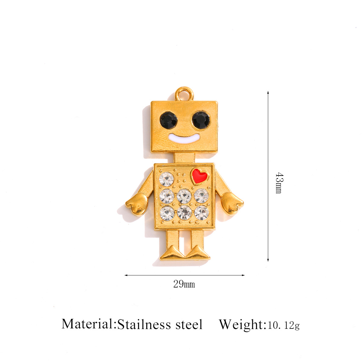 Pendentifs en acier inoxydable strass, Acier inoxydable 304, Robot, Placage de couleur d'or, DIY & émail & avec strass, 29x43mm, Vendu par PC