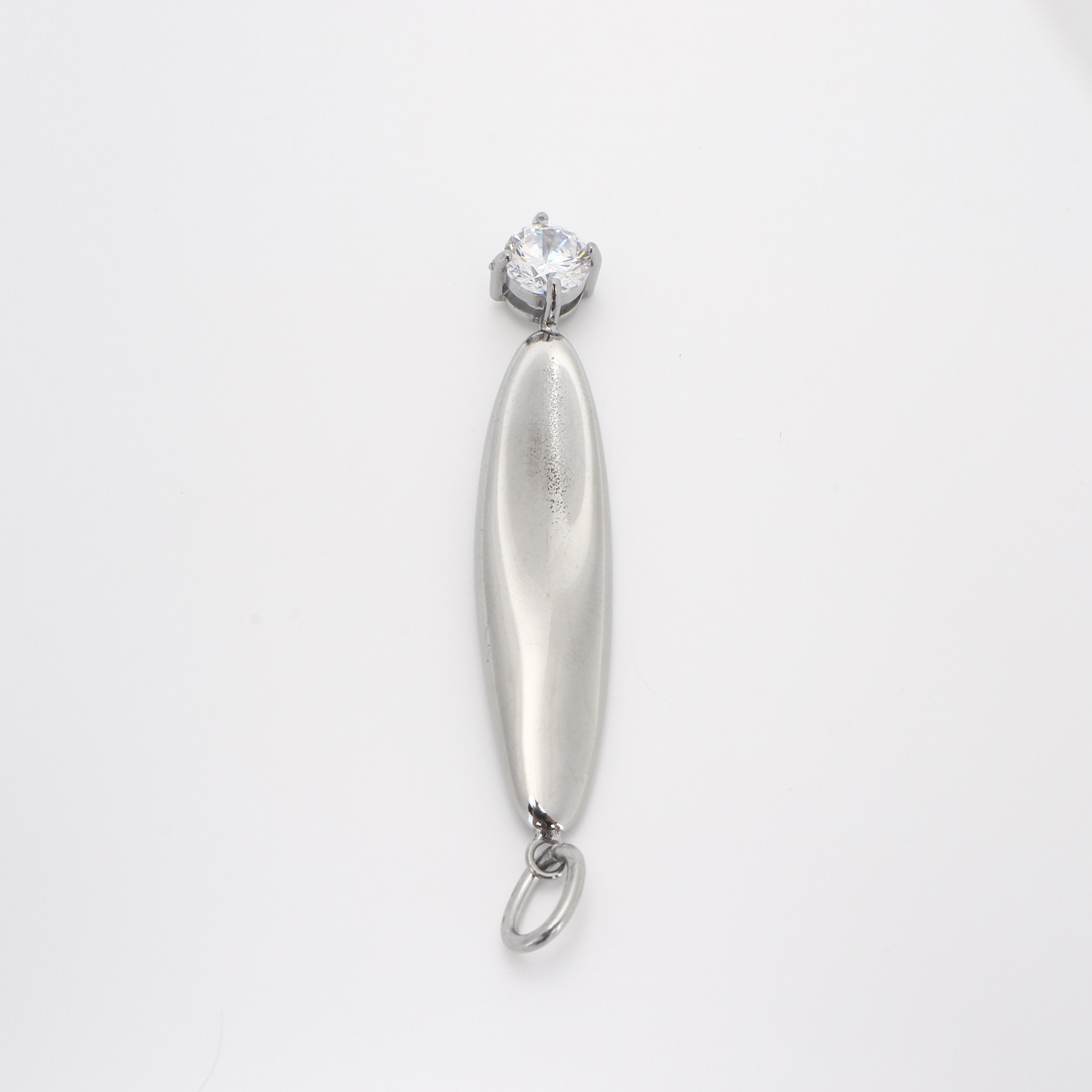 Pendentifs en acier inoxydable zircons cubiques, Acier inoxydable 304, avec zircon cubique, DIY, couleur originale, 53x9x3mm, Trou:Environ 3.5x5.5mm, Vendu par PC