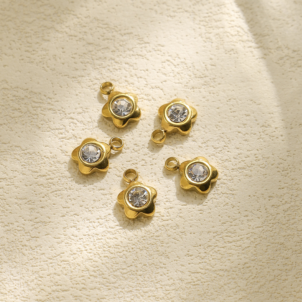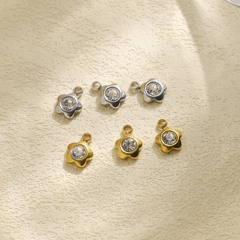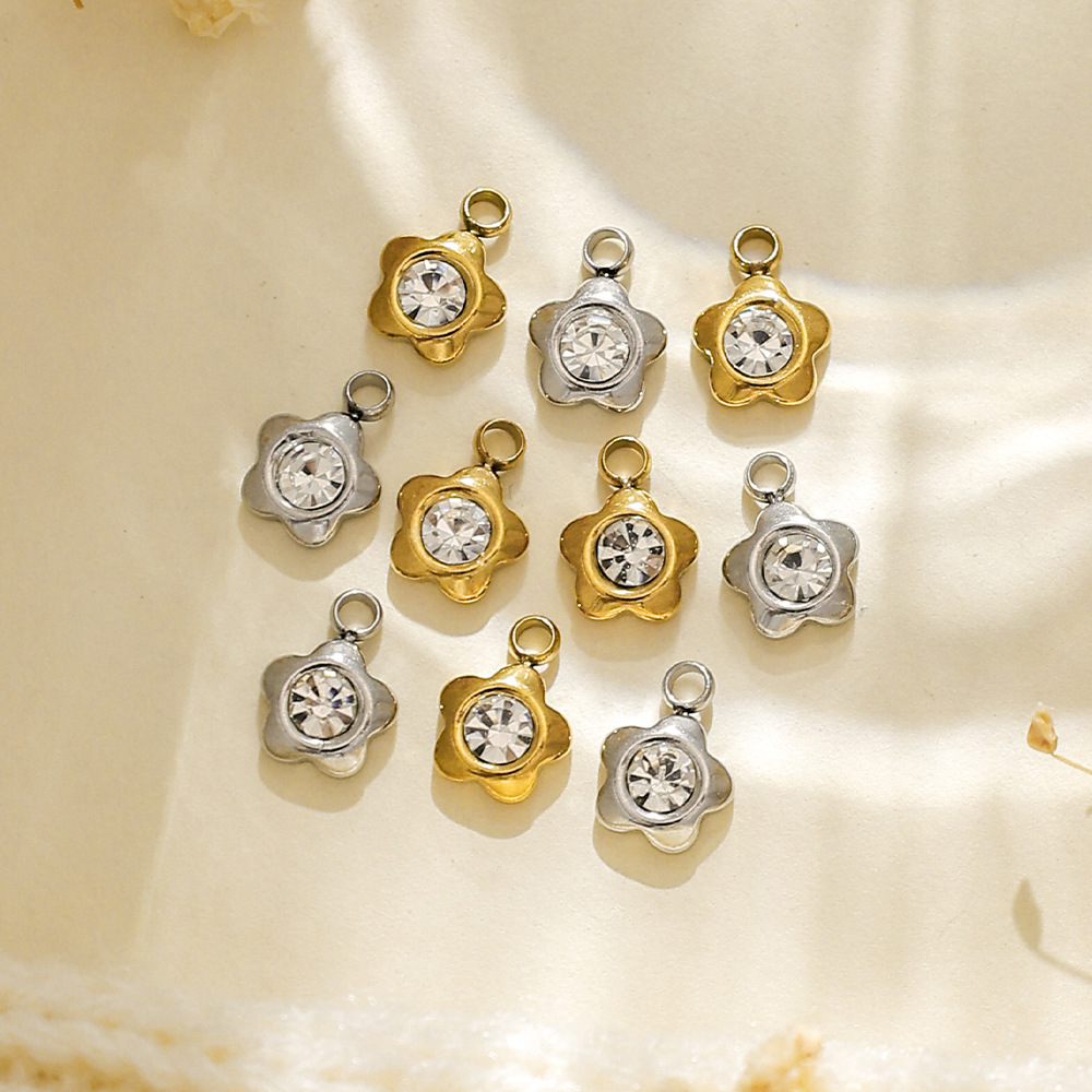 Pendentifs en acier inoxydable zircons cubiques, Acier inoxydable 304, fleur, Placage, DIY & pavé de micro zircon, plus de couleurs à choisir, 10PC/sac, Vendu par sac