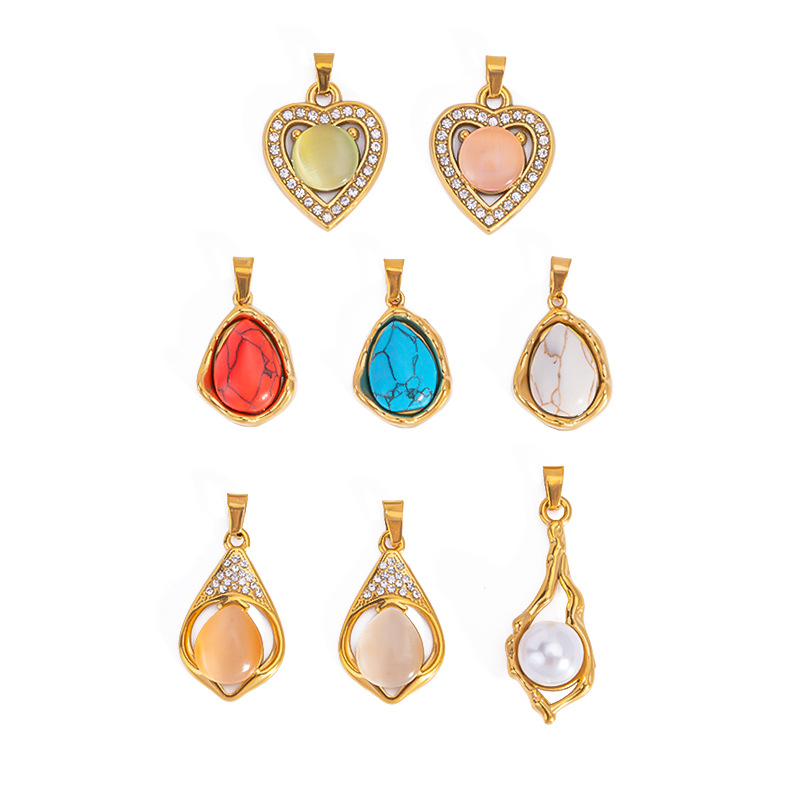 Pendentifs en acier inoxydable zircons cubiques, Acier inoxydable 304, avec pierre gemme & perle de plastique, Placage, DIY & pavé de micro zircon, plus de couleurs à choisir, 10PC/sac, Vendu par sac
