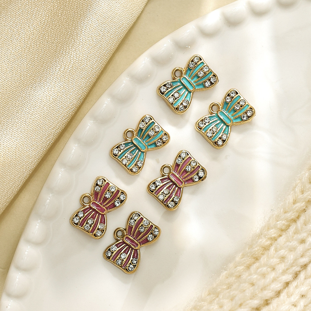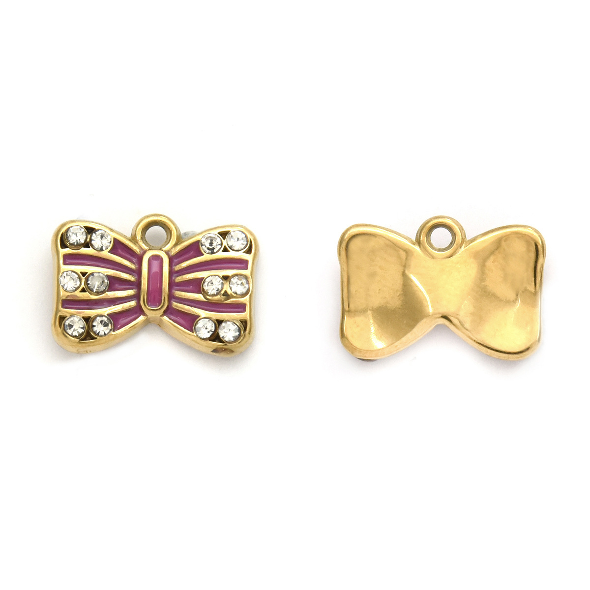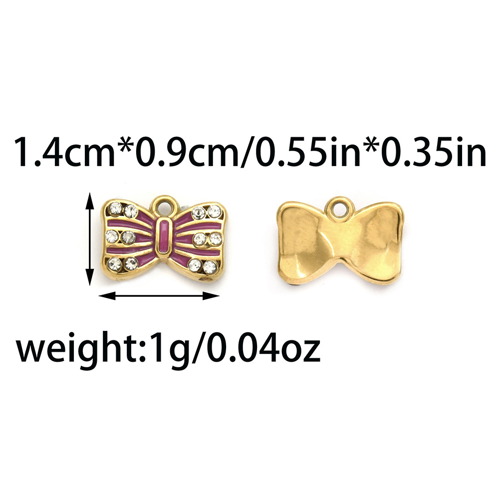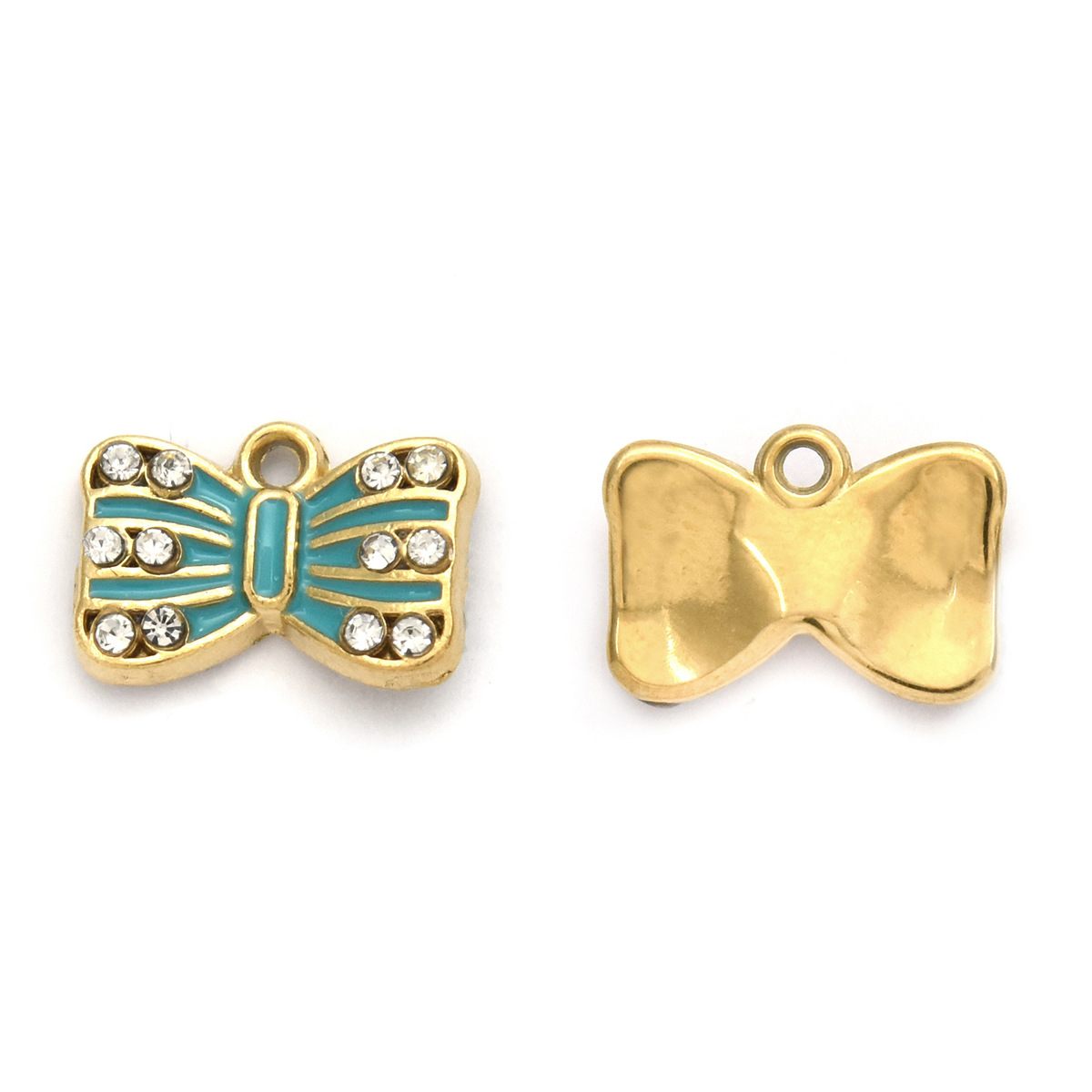 Pendentifs en acier inoxydable zircons cubiques, Acier inoxydable 304, Noeud papillon, Placage de couleur d'or, DIY & pavé de micro zircon, plus de couleurs à choisir, 10PC/sac, Vendu par sac