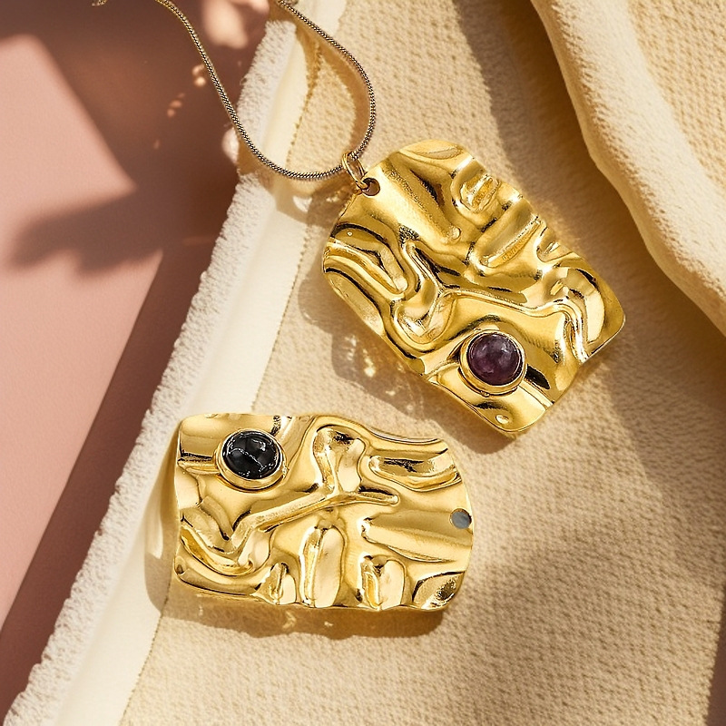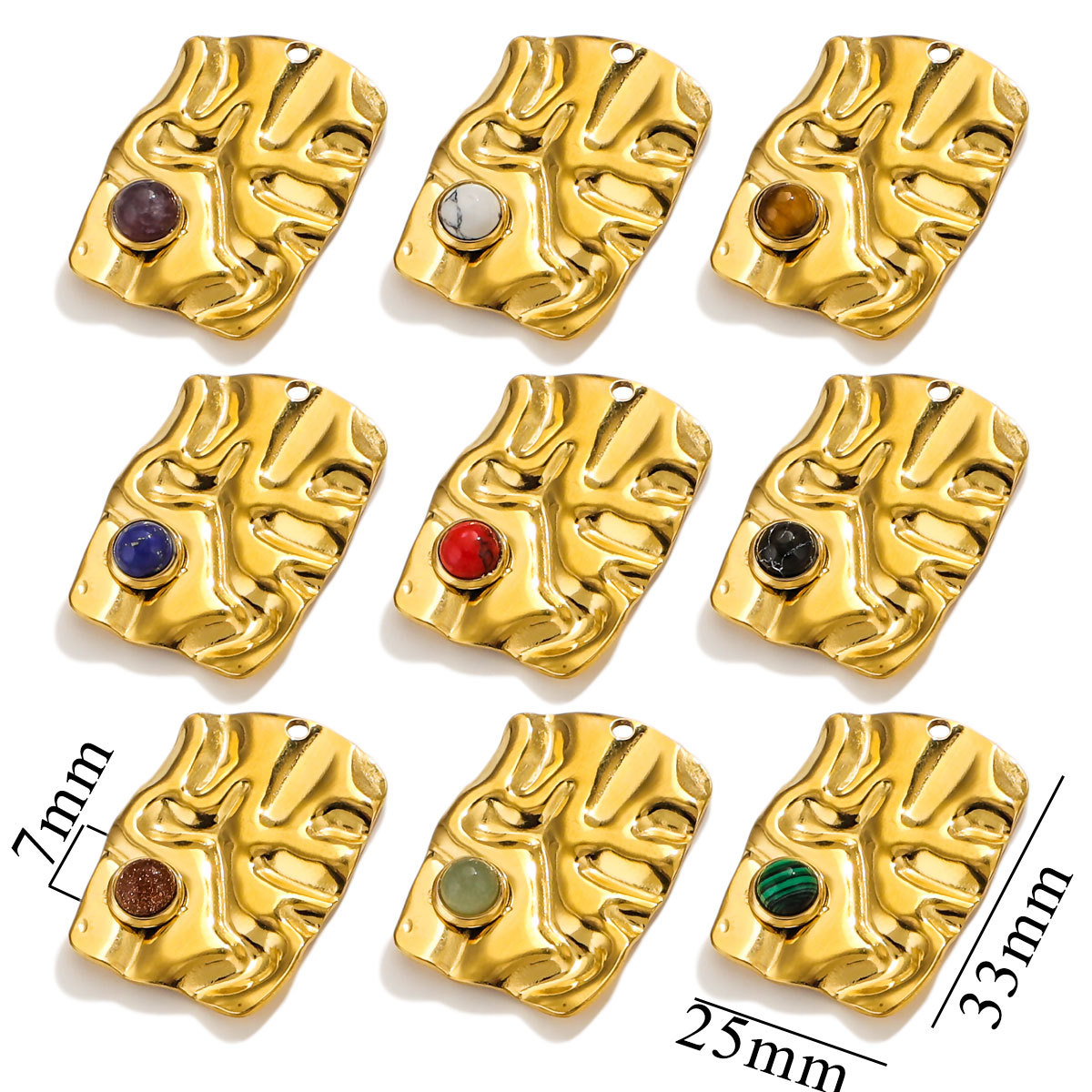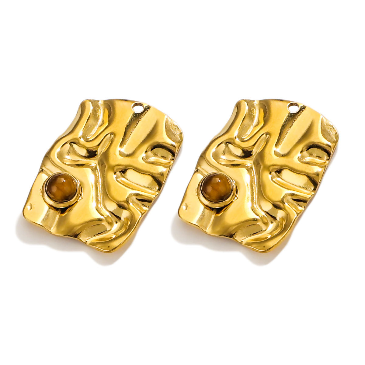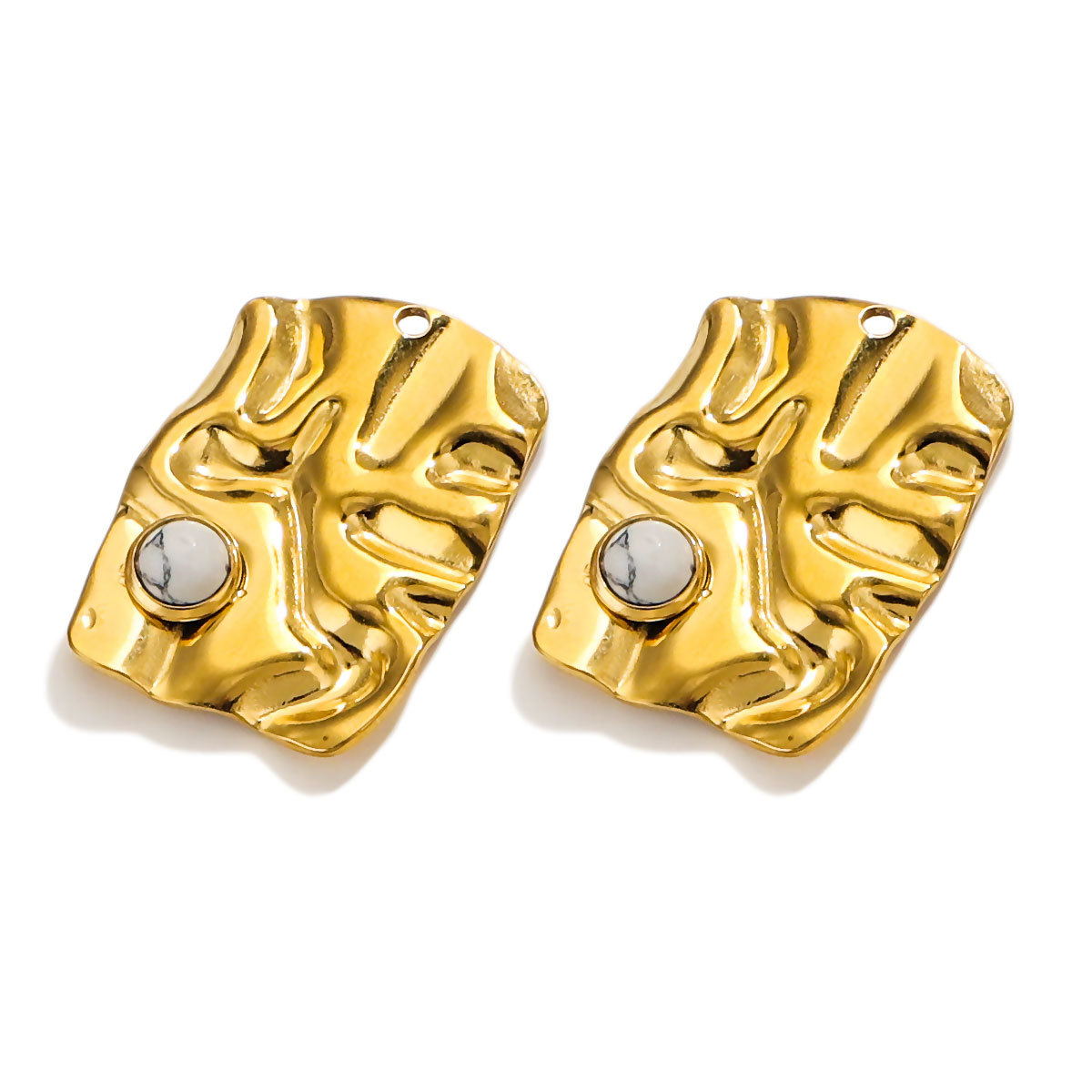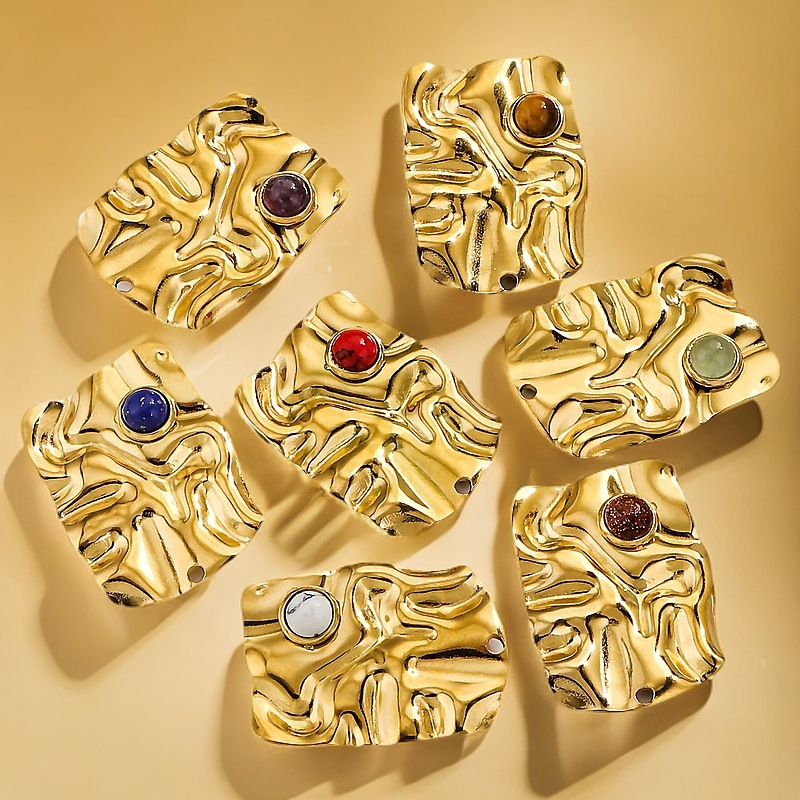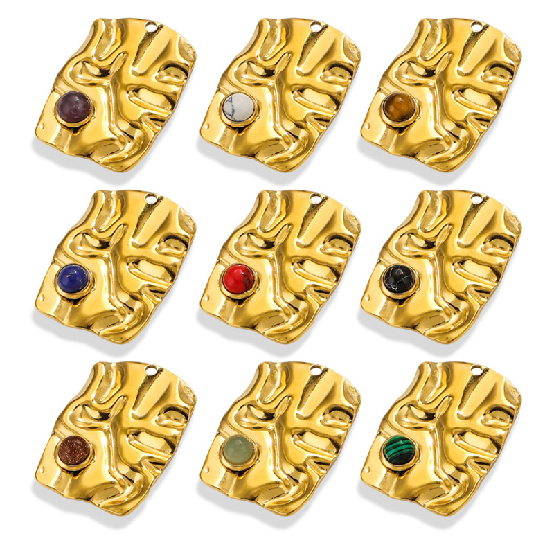 Pendentifs en acier inoxydable, Acier inoxydable 304, avec Pierre naturelle, rectangle, Placage, DIY & différents matériaux pour le choix, doré, 4PC/sac, Vendu par sac