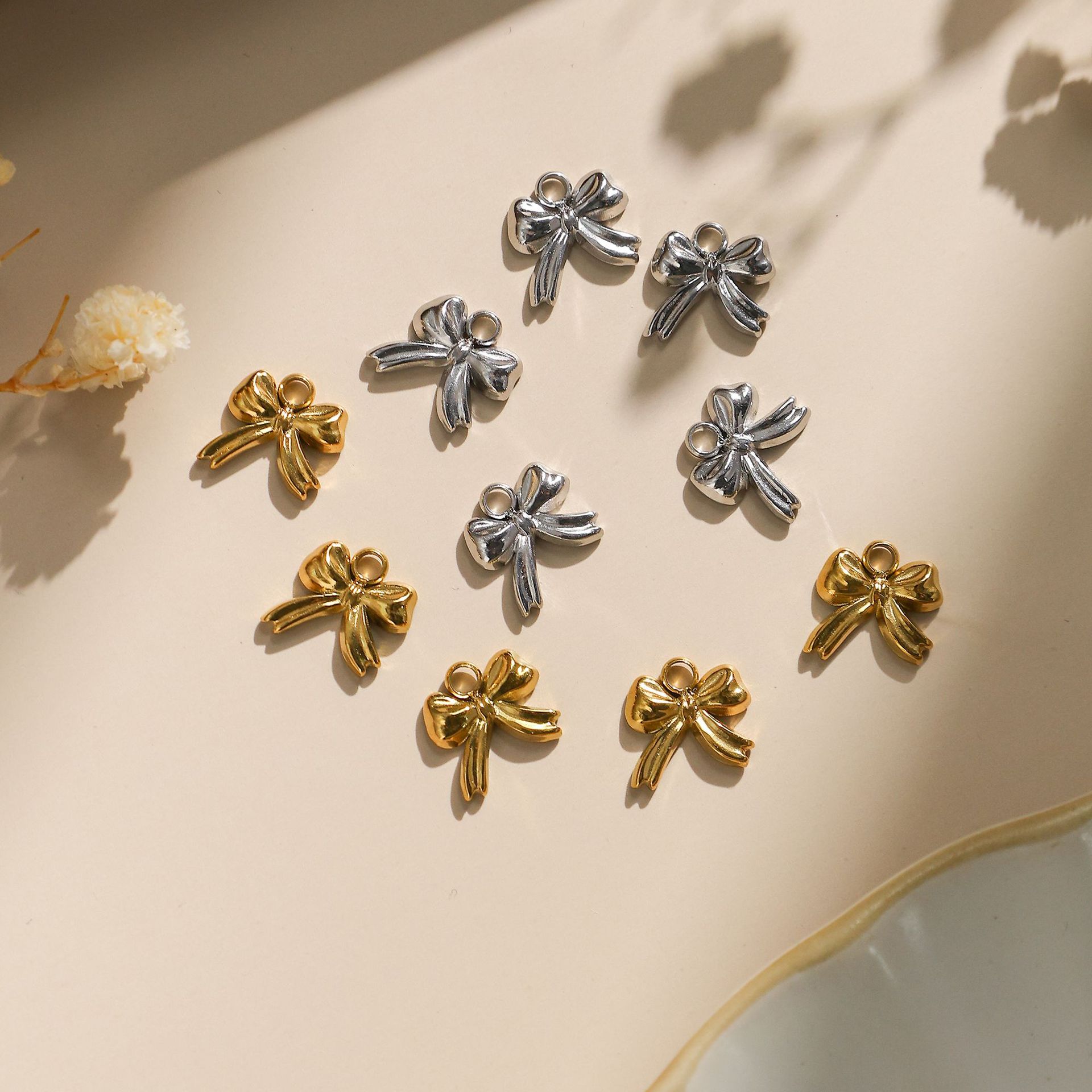 Pendentifs en acier inoxydable, Acier inoxydable 304, Noeud papillon, Placage ionique sous vide, DIY, plus de couleurs à choisir, 10x10mm, 10PC/sac, Vendu par sac