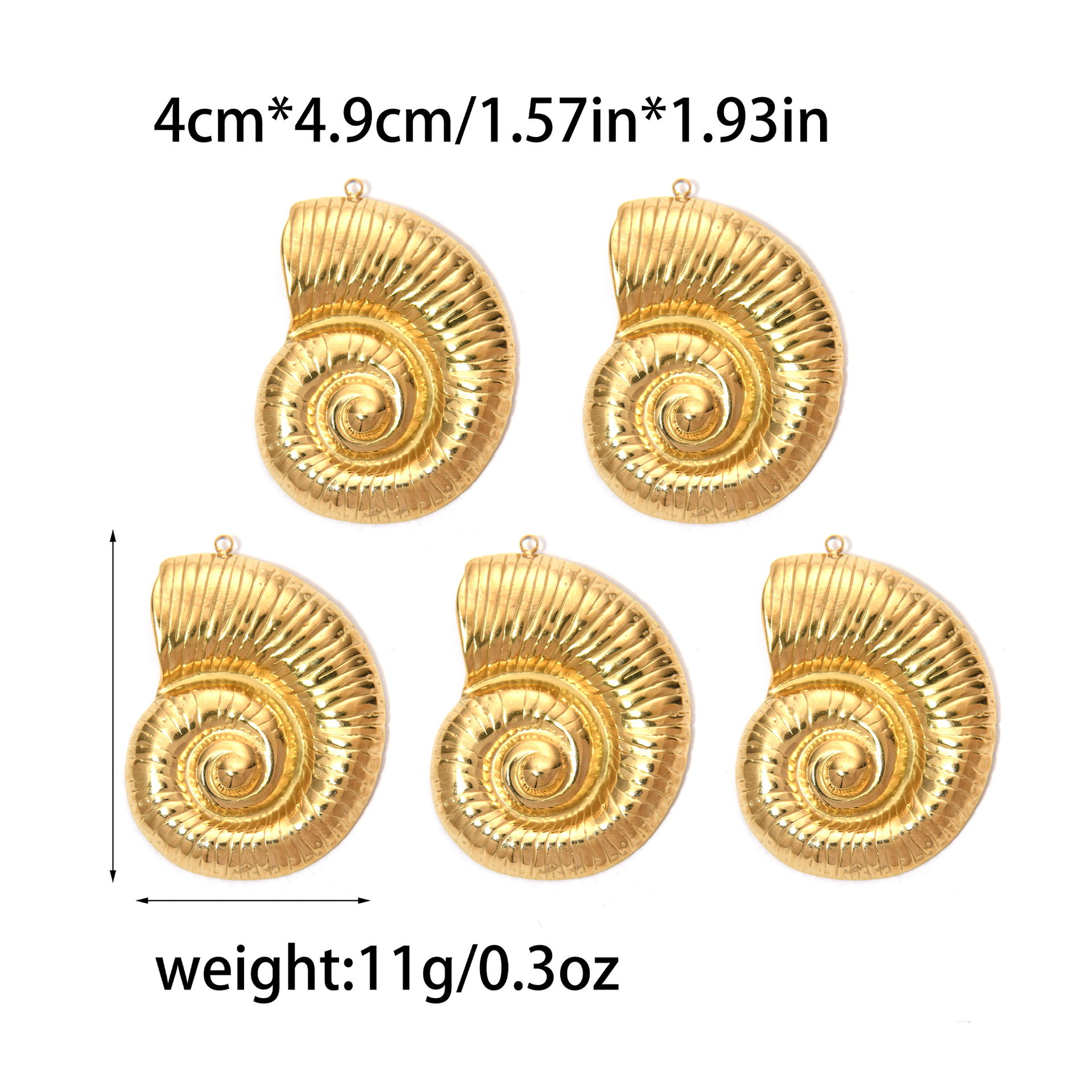 Pendentifs en acier inoxydable, Acier inoxydable 304, conque, Placage ionique sous vide, DIY, plus de couleurs à choisir, 40x49mm, 10PC/sac, Vendu par sac