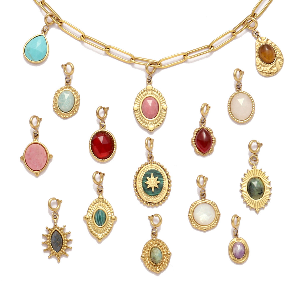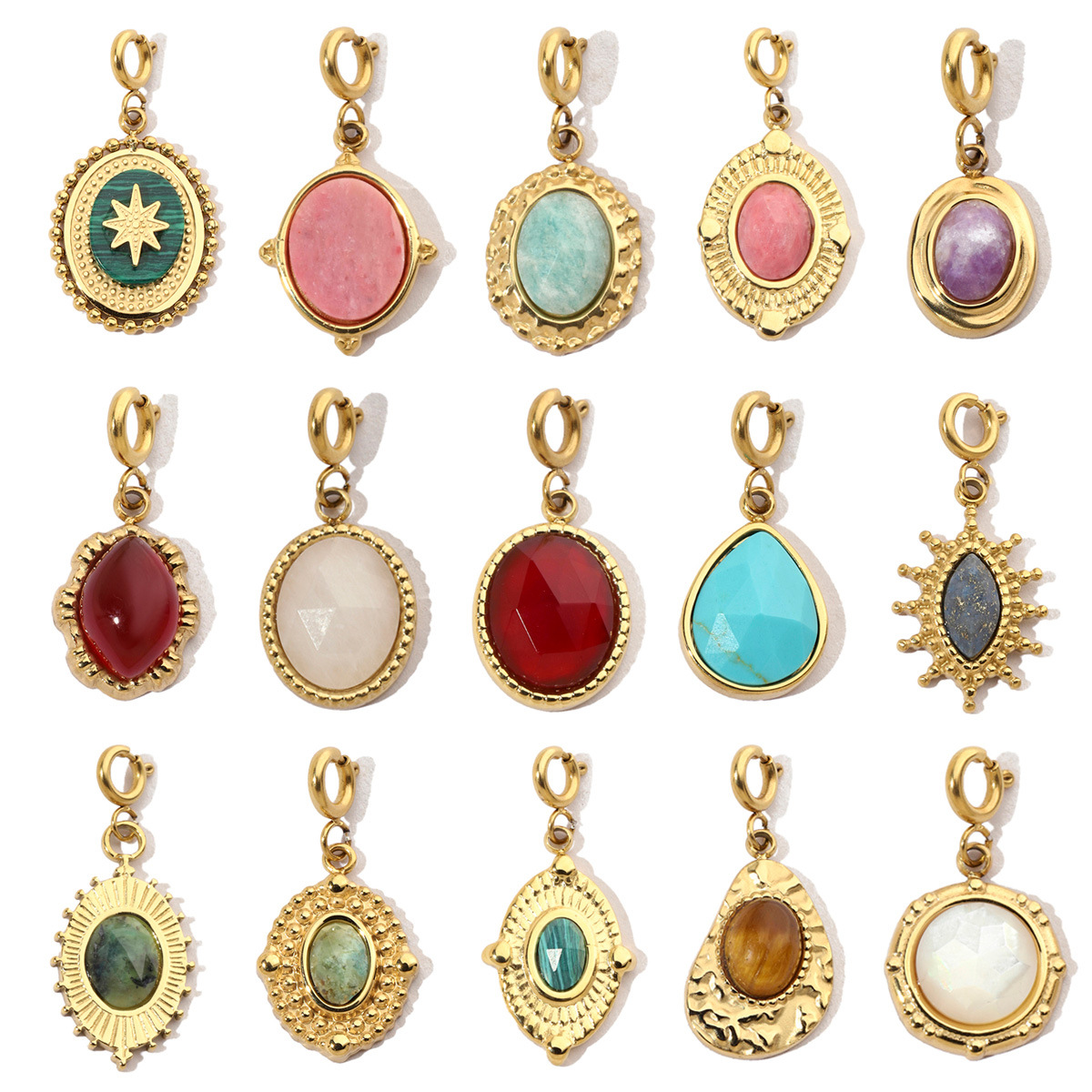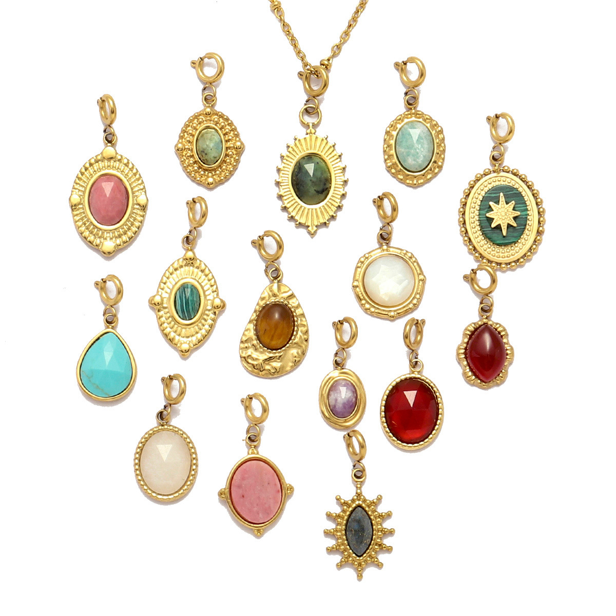 Pendentifs en acier inoxydable, Acier inoxydable 304, avec pierre gemme, Placage ionique sous vide, Forme différente pour le choix & DIY, plus de couleurs à choisir, 3PC/sac, Vendu par sac