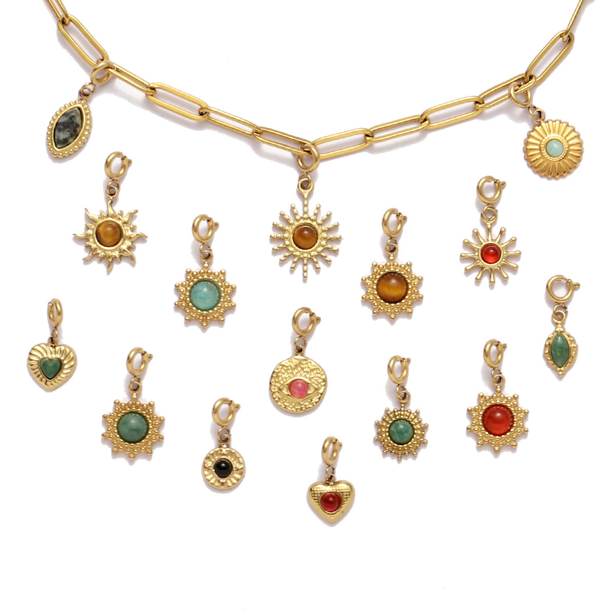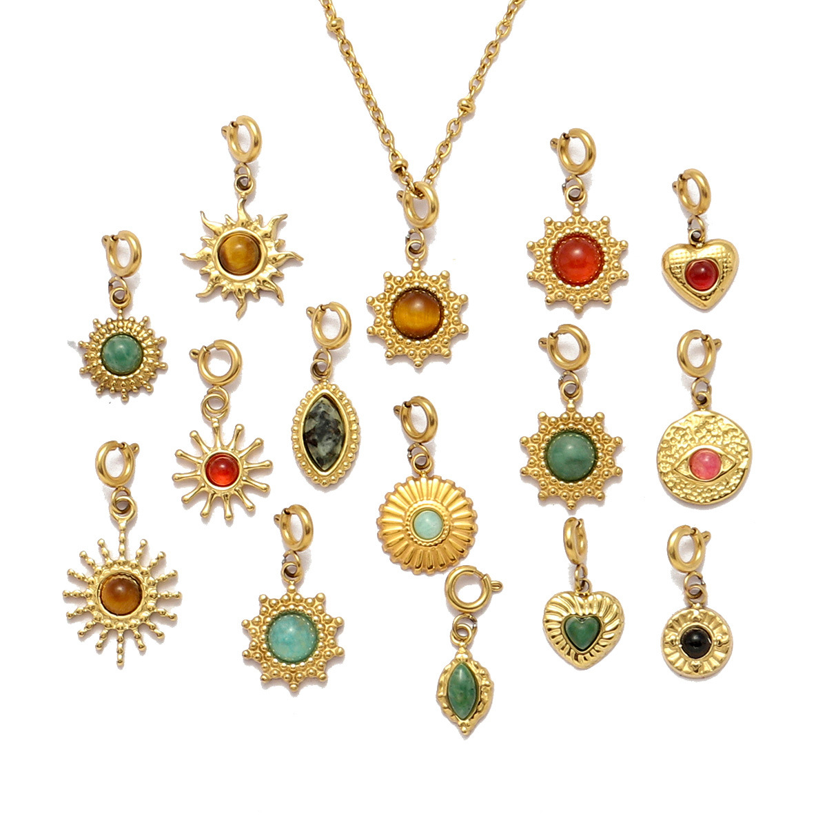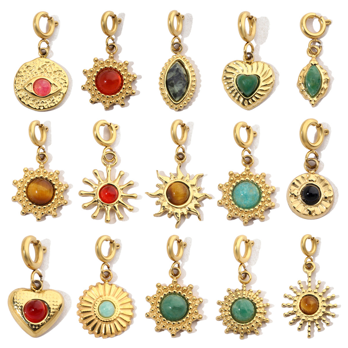 Pendentifs en acier inoxydable, Acier inoxydable 304, avec pierre gemme, Placage ionique sous vide, Forme différente pour le choix & DIY, plus de couleurs à choisir, 3PC/sac, Vendu par sac