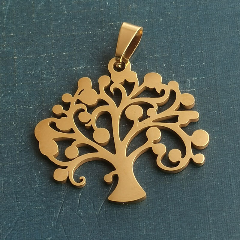 Pendentifs en acier inoxydable, Acier inoxydable 304, Arbre de vie, Placage ionique sous vide, DIY, doré, 30x28x1.6mm, 10PC/sac, Vendu par sac