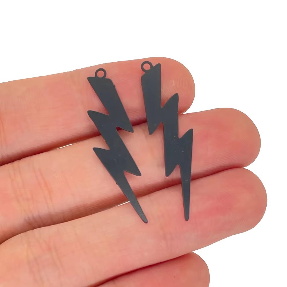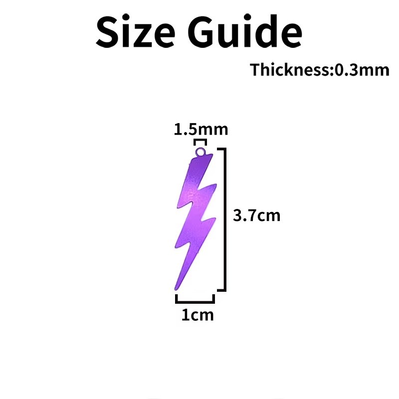 Pendentifs en acier inoxydable, Acier inoxydable 304, Symbole de la foudre, Placage ionique sous vide, DIY, plus de couleurs à choisir, 10x37x0.3mm, Trou:Environ 1.5mm, Environ 100PC/sac, Vendu par sac