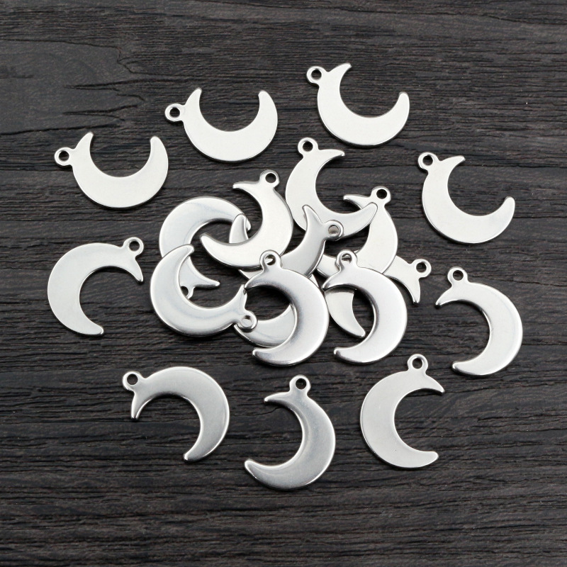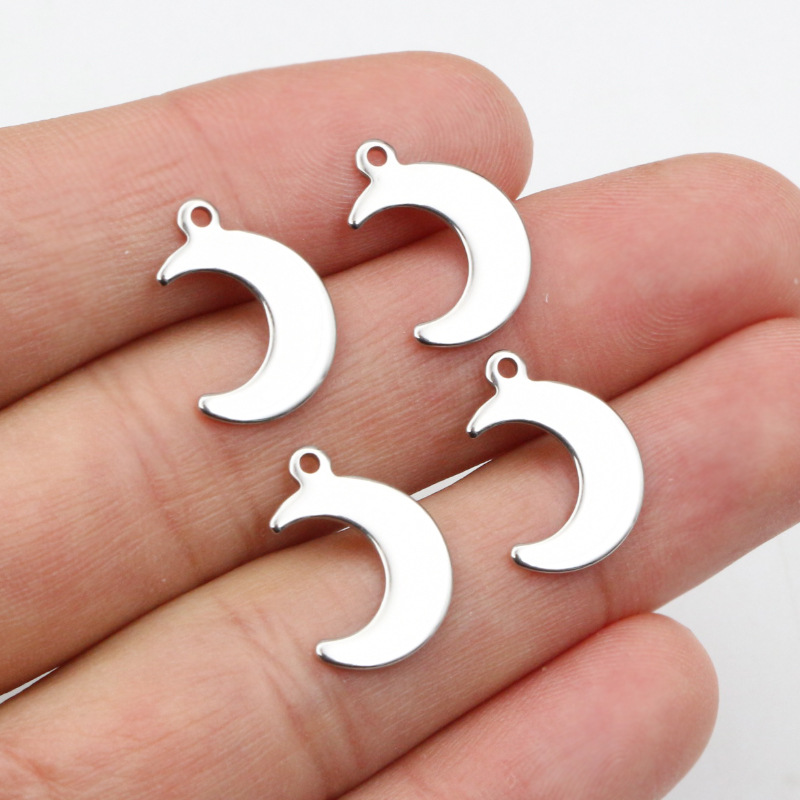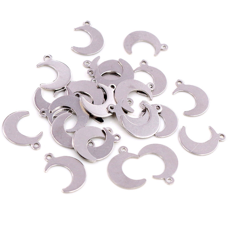 Pendentifs en acier inoxydable, Acier inoxydable 304, lune, Placage de couleur argentée, DIY, argent, 16x11mm, 100PC/sac, Vendu par sac